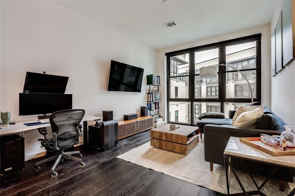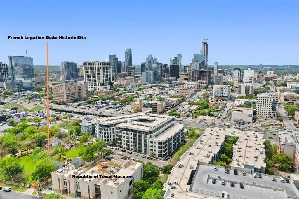 Discover city living at its best in this 1 bedroom, 1 bathroom condo at the Tyndall building in Downtown Austin. With a modern and practical design, this condo offers a comfortable living space with hardwood floors and an open layout. Upgraded light fixtures and remote control blackout shades. The living area features large floor to ceiling windows providing nice natural light, a view of the courtyard and partial view of the French Legation. The kitchen is well-equipped with stainless steel appliances, smooth cooktop range, built in microwave and plenty of cabinet space. The bedroom is a peaceful retreat with hardwood flooring and a large closet. The contemporary bathroom features modern fixtures and a spacious tub and shower. Storage Unit included, and is a well lit controlled access room, that is 5’x10’ in size, located on level G1. Residents enjoy access to amenities like a rooftop terrace with stunning city views, a fitness center, and convenient concierge service. One reserved parking spot in the garage. Located in the heart of Downtown Austin, this condo is within walking distance of dining, entertainment, and cultural attractions. Experience urban living at the Tyndall, where simplicity and convenience meet in the dynamic downtown landscape. MLS ID 8206022