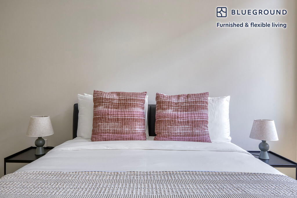 Show up and start living from day one in Hoboken with this lovely two bedroom Blueground apartment. You’ll love coming home to this thoughtfully furnished, beautifully designed, and fully equipped Hoboken home. (ID #NYC709) The advertised rate of $4,970/month is the lowest available price, based on a 12 month(s) stay with a move-in date of March 5, 2026. Rates vary depending on the duration of stay, season, and other parameters. For exact pricing and additional pricing components, please visit our website and enter your desired move-in and move-out dates. The rate is applicable when billed upfront; it can be higher if billed in multiple payments. Brokers are welcome to reach out. Were you looking for an unfurnished lease? Try Blueground instead and upgrade from unfurnished to furnished living: - Furnished at rates comparable to unfurnished - No setup or furniture costs - save thousands - Move-in ready - save time, just bring your suitcase Designed with you in mind As with any Blueground apartment, you’ll find a thoughtfully designed space complete with beautiful furniture and a fully equipped kitchen in this two bedroom property. And, thanks to our superior quality mattresses, luxury linens, and towels, you can relax knowing you’ll always feel comfortably at home. When you’re ready for some fun, you can take in the Hoboken vibes or bring the entertainment to you with the premium wireless speaker or smart TV. This apartment also offers in-apartment laundry. Sleeping arrangements King Bed, 70.8in/180cm Queen Bed, 63in/160cm Amenities Building amenities unique to this two bedroom apartment include an on-site: - BBQ Area - Dryer - Elevator - Swimming pool - Washing machine - Lounge - Pets allowed - Playroom Arrival and ongoing support The entire apartment is yours to enjoy! Throughout your stay, you’ll have access to our Client Experience team through the Blueground App. You can schedule additional cleanings, submit maintenance requests, and view our neighborhood recommendations with just a few taps. We’ll share all details upon confirmation of your stay. Ideally Located This furnished apartment is located in Hoboken, a quirky historic waterfront community across the Hudson River from Manhattan. This sought-after city is the birthplace of both baseball and legendary crooner Frank Sinatra. Hoboken is an easy commute to New York City, but there's plenty to do right in town. A wide variety of bars, restaurants, and cafes reflects the city's diverse population. There are several notable museums in Hoboken as well as a Shakespeare festival each summer. There's also the lovely Hudson River Waterfront Walkway, which has a riverside promenade with jaw-dropping views of the Manhattan skyline. Hoboken is well-connected to Manhattan by ferries, light rail lines, buses and NJ Transit’s PATH train system, which runs 24/7 between several stops in Hoboken and 33rd Street and the World Trade Center in Manhattan. Other things to note Building amenities may have an extra cost. This Blueground apartment has flexible lease options, allowing you to book it for one month, a year, or more. Pets are welcome, though weight limits and breed restrictions apply and may incur fees. Brokes CYOF. We take great pride in ensuring every photo displayed is shot in our own units with our actual furnishings. That said, we regularly refresh our decor and furniture arrangement, which may differ from what’s pictured. [SI]