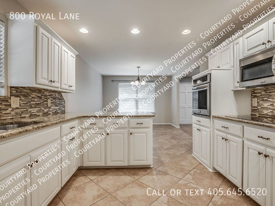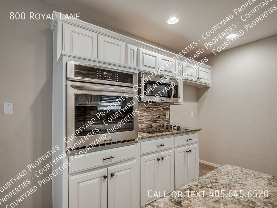 Step into this beautifully refreshed 4-bedroom, 2-bathroom home where comfort meets style. The expansive living room boasts vaulted ceilings, wood beam accents, a painted brick fireplace, and floating shelves, creating the perfect blend of charm and function. The kitchen is designed for both cooking and entertaining, featuring granite countertops, a tile backsplash, stainless steel appliances, a smooth cooktop, built in ovens and crisp white cabinetry. The breakfast bar flows easily into the dining area, making mealtime a breeze. The primary suite offers a peaceful retreat with a walk-in closet, granite-topped vanity, and an updated bath with subway tile surround. Three additional bedrooms and a second updated bath with granite countertops provide space for family, guests, or a home office. Throughout the home, you’ll find fresh finishes, easy-care flooring, and abundant natural light. The large backyard is ideal for outdoor gatherings or quiet evenings. A two-car garage and a corner lot are icing on the top. Located near shopping, dining, and schools, this move-in-ready home is a must-see!Electric Stove