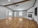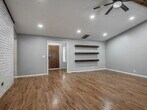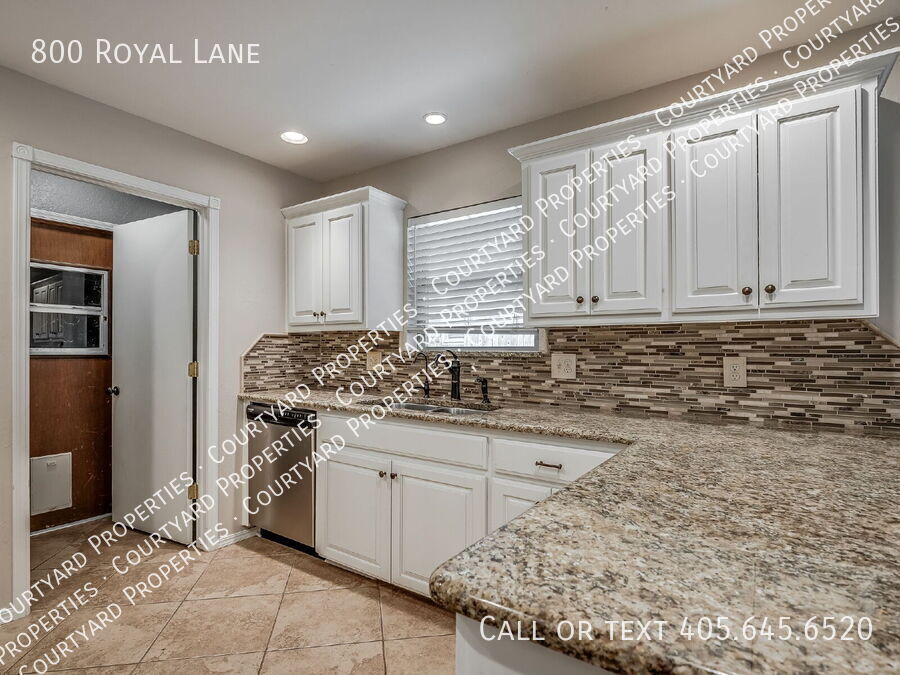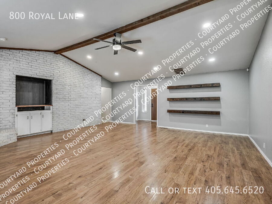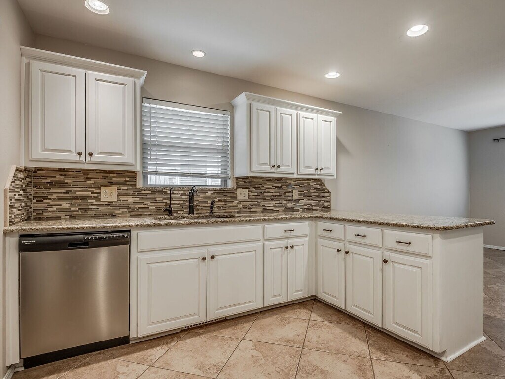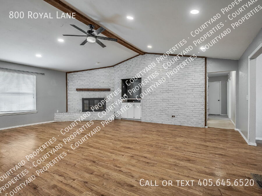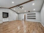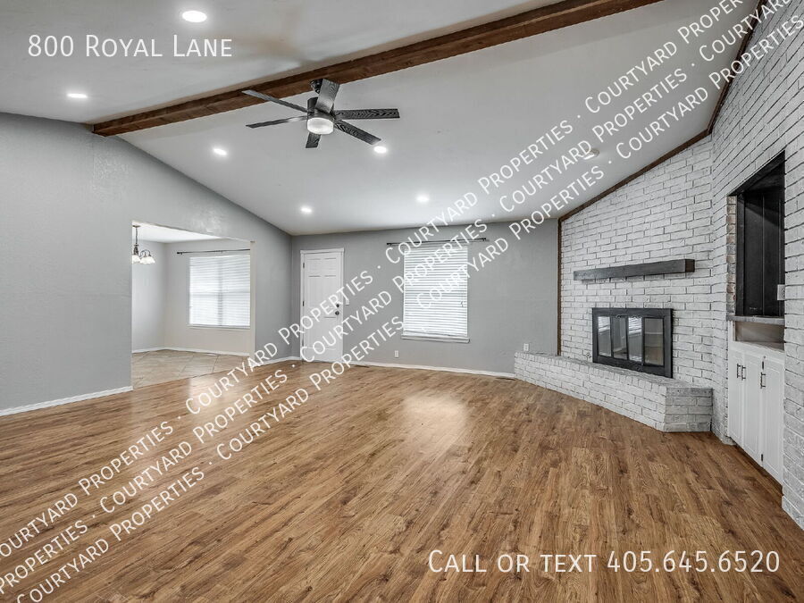 Step into this beautifully refreshed 4-bedroom, 2-bathroom home where comfort meets style. The expansive living room boasts vaulted ceilings, wood beam accents, a painted brick fireplace, and floating shelves, creating the perfect blend of charm and function. The kitchen is designed for both cooking and entertaining, featuring granite countertops, a tile backsplash, stainless steel appliances, a smooth cooktop, built in ovens and crisp white cabinetry. The breakfast bar flows easily into the dining area, making mealtime a breeze. The primary suite offers a peaceful retreat with a walk-in closet, granite-topped vanity, and an updated bath with subway tile surround. Three additional bedrooms and a second updated bath with granite countertops provide space for family, guests, or a home office. Throughout the home, you’ll find fresh finishes, easy-care flooring, and abundant natural light. The large backyard is ideal for outdoor gatherings or quiet evenings. A two-car garage and a corner lot are icing on the top. Located near shopping, dining, and schools, this move-in-ready home is a must-see!