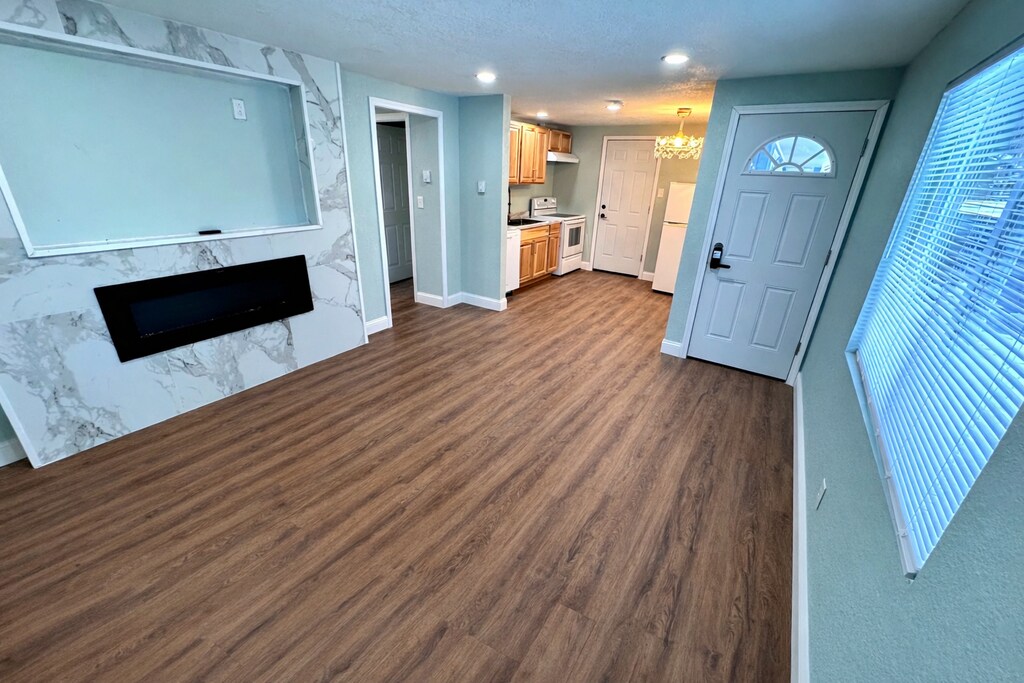 At Ritchie Village’s Pink Flamingo, duplex 15, we packed every possible upgrade into this modest space. New deep tub with marble tile surround, king bedroom set, leather couch, granite countertops, 65 inch modern electric fireplace and 65 inch smart Roku TV. Private garage entry and in unit laundry. Brought to you by Appleton Corporate Housing with 16 of these duplexes and 40+ furnished housing options in Northeast Wisconsin.