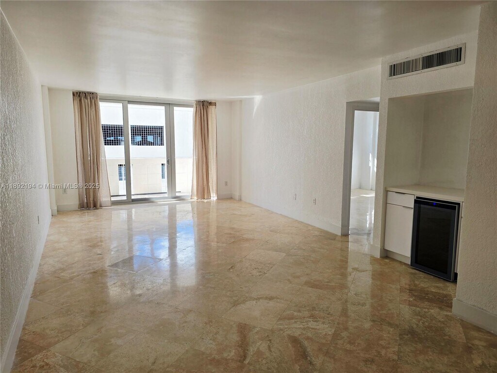 This 1-bedroom, 1-bathroom apartment at 800 West Ave offers 810 square feet of living space. The living room provides ample room for relaxation and features air conditioning for comfort. The kitchen includes a dishwasher for convenient meal preparation and cleanup. The bedroom is spacious, accommodating a queen-sized bed and additional furniture. The bathroom is equipped with standard fixtures. Additional amenities include an in-unit washer and dryer for laundry convenience. The exterior features a well-maintained building with easy access to nearby services. Brickell Brokers LLC Courtesy of Douglas Elliman