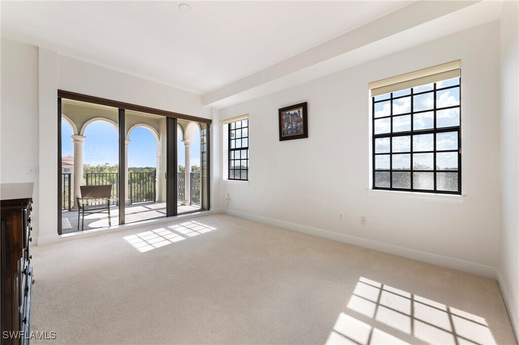 Introducing this CORNER UNIT,TOP (3rd) FLOOR,2-bedroom plus large den (with closet) and 2 full-bath residence in the highly desirable Residences at Coconut Point! Step inside to find soaring 10’ ceilings & 8’ solid wood doors. The open-concept layout flows effortlessly out the impact-rated sliding glass doors to the open-air lanai—perfect for enjoying the Florida lifestyle year-round.The primary suite is a private retreat,complete with dual vanities,a glass-enclosed shower,an oversized soaking tub,and a spacious walk-in closet. On the other side of the condo,a pocket door separates the guest quarters (private bedroom & full bathroom) from the rest of the Unit. Walk-in laundry room! Enjoy resort-style living every day with community amenities that include a sparkling pool and spa,state-of-the-art fitness center,community room,BBQ area,bike storage,and a vehicle wash station.This home also comes with two parking spaces—including one reserved spot (#30) conveniently located under the building—plus a private storage unit(#15) located right next to your car. Experience the unmatched convenience of living steps from Coconut Point Mall’s premier restaurants,cafes,salons,and shops,and just minutes from Hertz Arena,RSW International Airport,I-75,and the white-sand beaches of Bonita and Barefoot Beach.