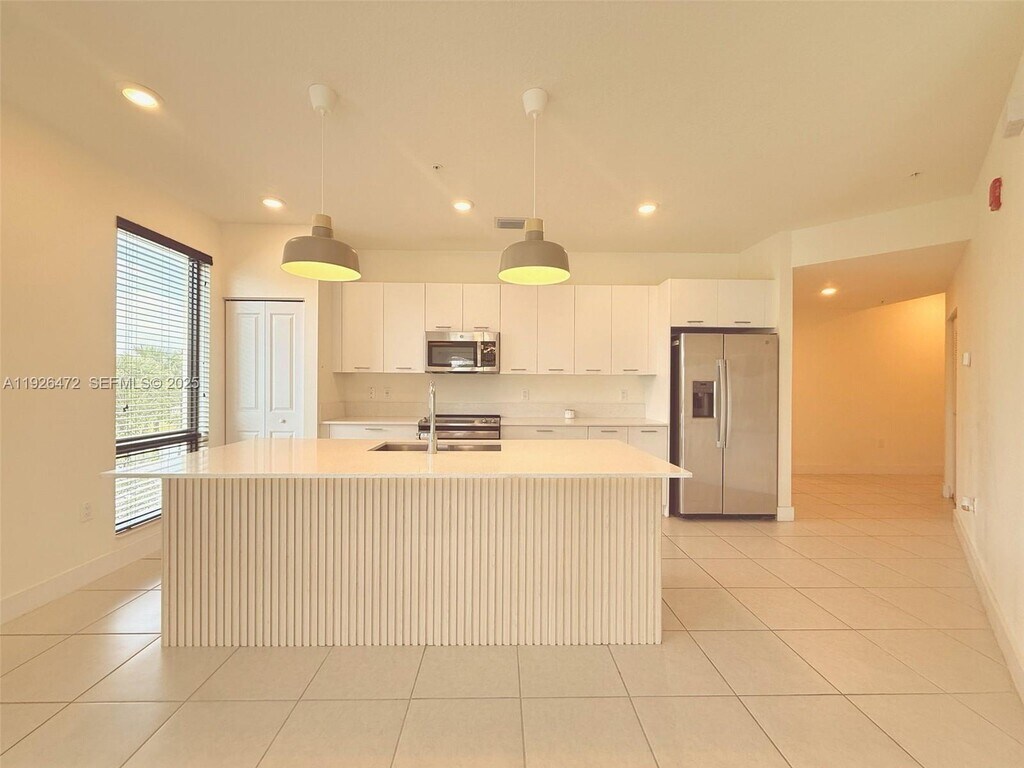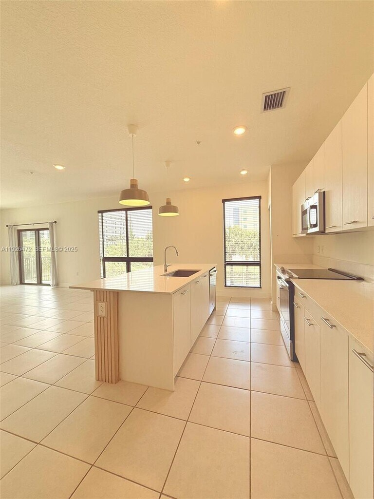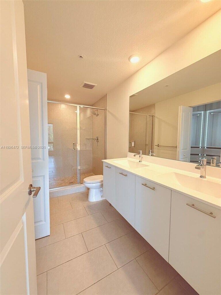Stunning apartment with a contemporary open-concept design that blends the kitchen, dining, and family rooms into one elegant living space. Floor-to-ceiling sliding glass doors open to a private balcony, perfect for relaxation and entertaining. This residence offers 3 bedrooms and 2 bathrooms, highlighted by a spacious primary suite with a luxurious en-suite bath featuring a shower, dual sinks, and sleek floating vanities. The modern kitchen features upgraded white quartz countertops, a spacious island, and high-end stainless steel appliances, plus an in-unit washer and dryer. Residents enjoy access to an exceptional clubhouse with resort-style pool, basketball court, fitness facilities, business center, and a wide range of social and recreational amenities. MLS # A11959594