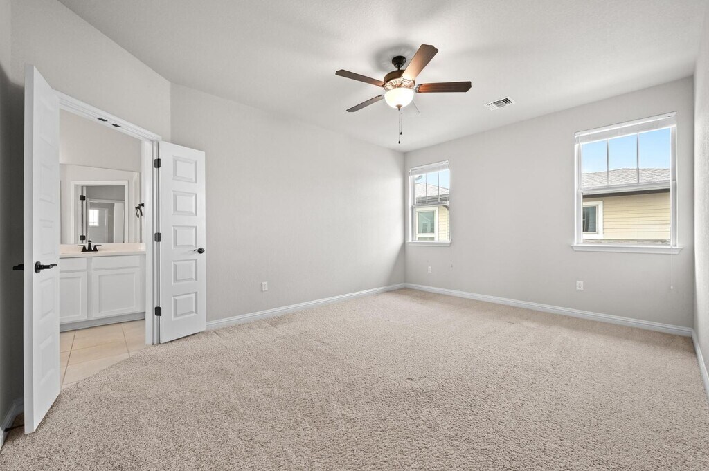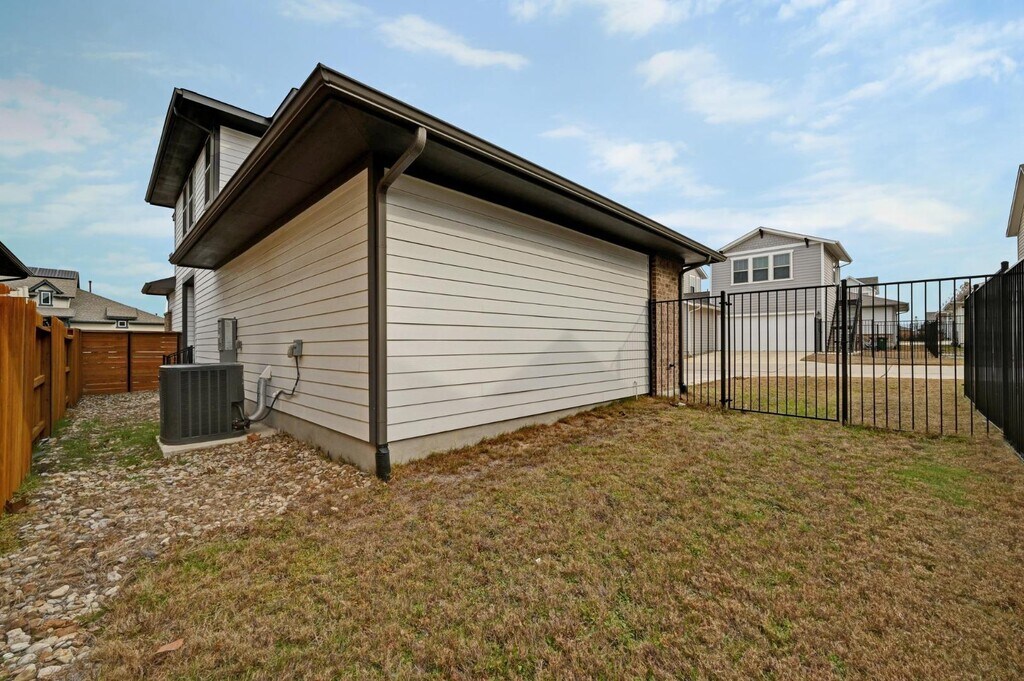 Modern design meets suburban comfort in this beautiful home in Easton Park.Home Highlights:-Contemporary exterior with a covered front porch and attached two-car garage.-Spacious open floor plan; Sliding doors open to the covered back patio.-Modern island kitchen with a breakfast bar, tile backsplash, pantry, and ample cabinet space.-Primary suite with a private bathroom featuring dual vanities, a separate water closet, and a generous walk-in closet; Well-sized secondary bedrooms.-Linen closet and laundry room conveniently located upstairs.-Fenced backyard with a covered patio perfect for private outdoor activities.Location Highlights:-Nestled in Easton Park, featuring resort-style amenities including a pool, playground, and walking trails.-Easy access to TX-71 and US-183 for quick commutes to Downtown Austin, the airport, and nearby shopping.