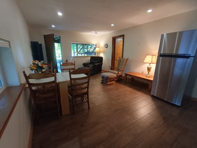 Here are the key features of the rental property: * FURNISHED! * Great New Kitchen * Great New Shower & Bathroom * Quiet * Free Easy Parking * Good Owner ____________________________________ * Tranquil location away from city life * Serene ambiance with close connection to nature * Minutes from shopping, highways, and essential amenities * Peaceful retreat in a distinctive natural setting * Cozy, cabin-like apartment with large windows facing treed yard and small pond * Fully furnished 1-bedroom apartment * Private and quiet, surrounded by Douglas fir forest * Includes utilities, WIFI, garden plot, and parking for one vehicle * Amenities for outdoor enthusiasts nearby: hiking, biking trails, parks, kayaking, and boating * Heated bathroom floor and fully tiled shower -- towel warmer * All stainless steel appliances included -- undercabinet kitchen lighting * Space available for camper trailer, boat, kayak, and bicycle (additional cost may apply) * Lease terms: 6 months - 1 year * Financial requirements: First and last month's rent, plus security deposit, income of 3x rent recommended * No pets, smoking, vaping, illegal drugs, or marijuana