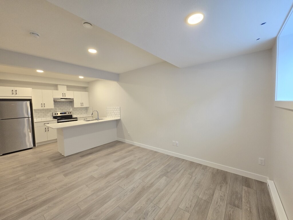 Welcome home to Blatchford! Edmonton's newest urban neighborhood! Basement Apartment — Shared vestibule entry: upstaris avaialble as well, check our website for more information! Rent: 1,100/month Security Deposit: 1,100 Utilities: $150 flat fee (heat, water, waste & electricity) *NO PETS* Street parking 569 sq ft fully self-contained suite 1 bedroom, 1 bathroom Open concept living & kitchen In-suite laundry Vinyl plank flooring Stainless steel appliances & quartz counter tops Storage space Why live in Blatchford? Sustainable, energy-efficient community with reduced ecological footprint. Walkable & connected; bike lanes, paths, and transit options make car-free living easy. Close to downtown and NAIT! Nearby shops, restaurants, services, and recreation; a true urban lifestyle. A friendly, forward-thinking neighbourhood designed for modern living. Book a viewing today! Please note, a list of questions will come to you via email, once a response is recieved we will book your viewing. www.maxwellhorizon.ca/residential