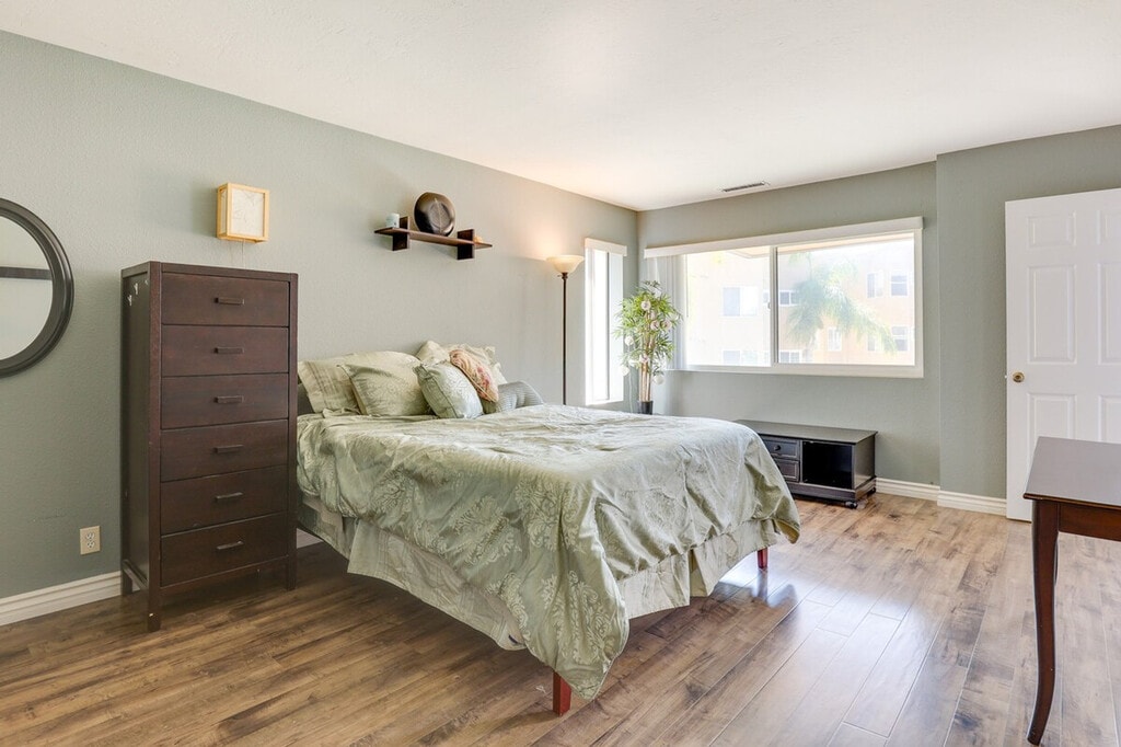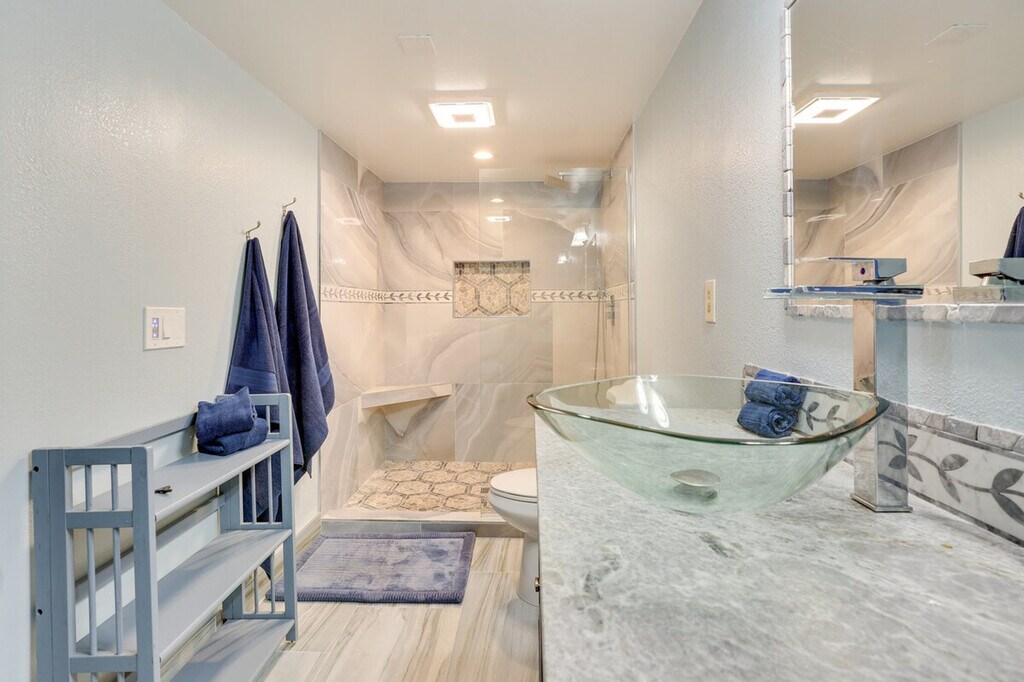 Experience the best of the California coast and feel at home in this lovely 2-bedroom, 2.5-bath condo in Carlsbad. The property requires multiple stairs to access. This vacation rental offers the perfect destination for beach lovers. It features 2 smart TVs, a DVD player, a gas fireplace, a gas grill, and 2 dining tables. The newly renovated kitchen with upscale construction is fully equipped with cooking basics, a refrigerator, stove/oven, microwave, dishwasher, dishware and flatware, a blender, a drip coffee maker, spices, and a wet bar. You'll also find free Wi-Fi, linens/towels, an in-unit washer/dryer, a hair dryer, hangers, an iron/board, trash bags/paper towels, complimentary toiletries (starter kit), and a welcome snack basket. Pets are welcome with a $100 fee (plus fees and taxes, max 2). Parking is available in the garage (1 vehicle, code provided) and in a designated spot (1 vehicle). Guest parking and free street parking are available on a first-come, first-served basis. Boasting a prime location right near the sandy shoreline, this condo is near Carlsbad State Beach, Carlsbad Premium Outlets, and LEGOLAND California. Quiet hours are observed from 10:00 PM to 10:00 AM. The property does not have air conditioning and may not be suitable for young children because the unit has sharp corners on the indoor tiling. The seasonal community pool will be open from May to September. Guests will have access to the entire property via keyless entry. [SI]