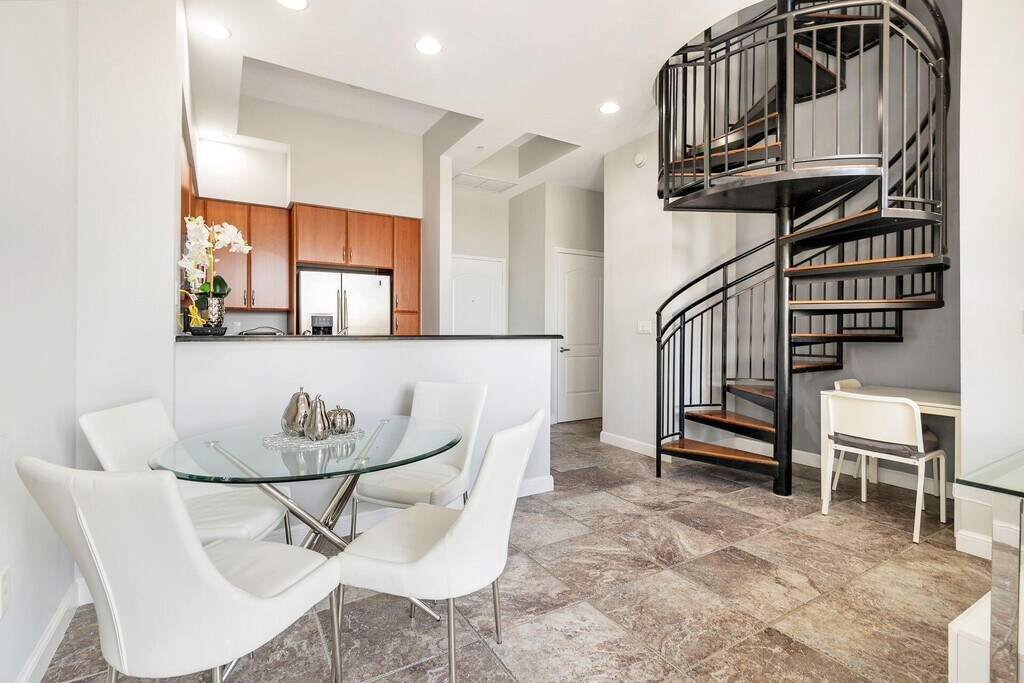 Stunning City Place Condo! Amazing 1BR/1.5BTH loft style condo with beautiful southeast view. This great living space has professional finishes throughout. A fully equipped kitchen with custom cabinets,granite countertops,Stainless steel appliances is open to the dining/living area with room for office! The circular staircase leads to a primary suite to envy with 2 walk-in closets,dual vanities in primary bath with walk in shower and separate bath! A first floor powder room and washer & dryer in unit. make this the perfect home. Basic cable,valet,front concierge,24/7 security,bike storage,sauna,rooftop heated swimming pool with grill area. Close proximity to Palm Beach Island,The Square (Cityplace),Grandview Market,and Palm Beach International Airport. MLS ID B26017993