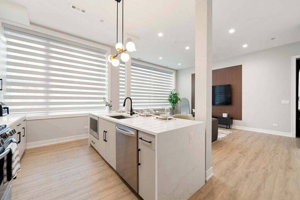 Feel at home in this modern 2-bedroom, 2-bath apartment in Chicago's vibrant Tri-Taylor neighborhood. The open-concept living area is filled with natural light and modern touches. The living room features a comfortable sofa, smart TV, and access to a private balcony. The fully equipped kitchen includes stainless steel appliances, granite countertops, cookware, and a coffee maker. Both bedrooms offer queen-size beds with plush bedding, ample closet space, and blackout curtains. The unit includes in-unit laundry. Free parking is included. Centrally located in Chicago’s Tri-Taylor neighborhood, part of the broader Near West Side community, this apartment is near the Illinois Medical District and the University of Illinois at Chicago (UIC). The neighborhood features a mix of historic brick buildings, quiet tree-lined streets, and newer developments. Tri-Taylor is known for its proximity to the historic Little Italy district along Taylor Street. Public transit is convenient and well-connected, centered around the CTA Pink Line’s Polk Station, just a block away, offering quick access to downtown Chicago. Several CTA bus routes also run nearby. The area is highly walkable and transit-friendly. Quiet hours are between 10:00 PM and 8:00 AM. No parties or events are allowed, and there is a $1,000 fine for violations. Smoking is not allowed inside the apartment, and there is a $500 fine for violations. Tampering with noise monitors or cameras is prohibited and will result in a $500 fine. Due to a building requirement, the primary guest must be 25 years or older to book. Registration Number: R2 [SI]