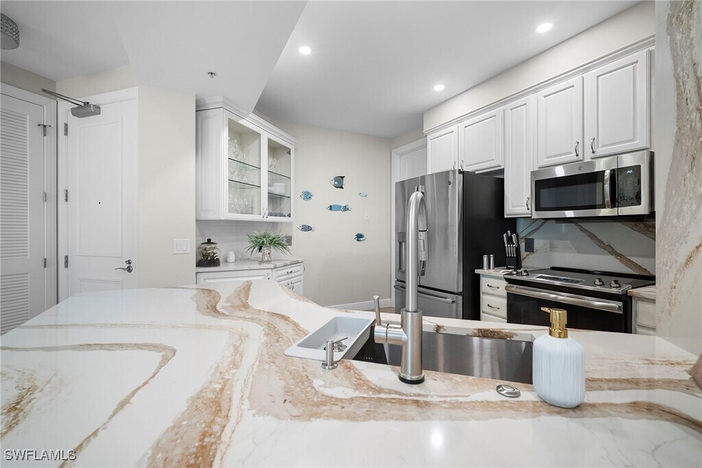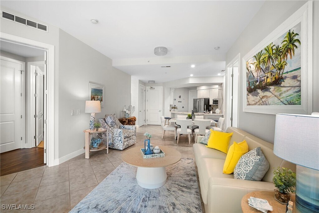 ALL DRESSED UP AND EVERYWHERE TO GO. This is the ideal SNOW BIRD vacation destination with shopping,dining,and entertainment just steps from your door. The condo is BEAUTIFULLY CONTEMPORARY turnkey furnished and features a fully stocked kitchen with all appliances and utensils,in-unit laundry,walk-in closets,and a private balcony . The building includes elevator access and offers resort-style amenities such as a community pool and spa. Enjoy the convenience of having major retailers like Target,Dillard’s,and Barnes & Noble within close by along with popular restaurants and cafés including Tommy Bahama,Divieto Ristorante,and Starbucks. You're also just minutes away from Miromar Outlets,Hertz Arena for concerts and events,and a short drive to the beautiful Gulf beaches. COME ON DOWN!!!!