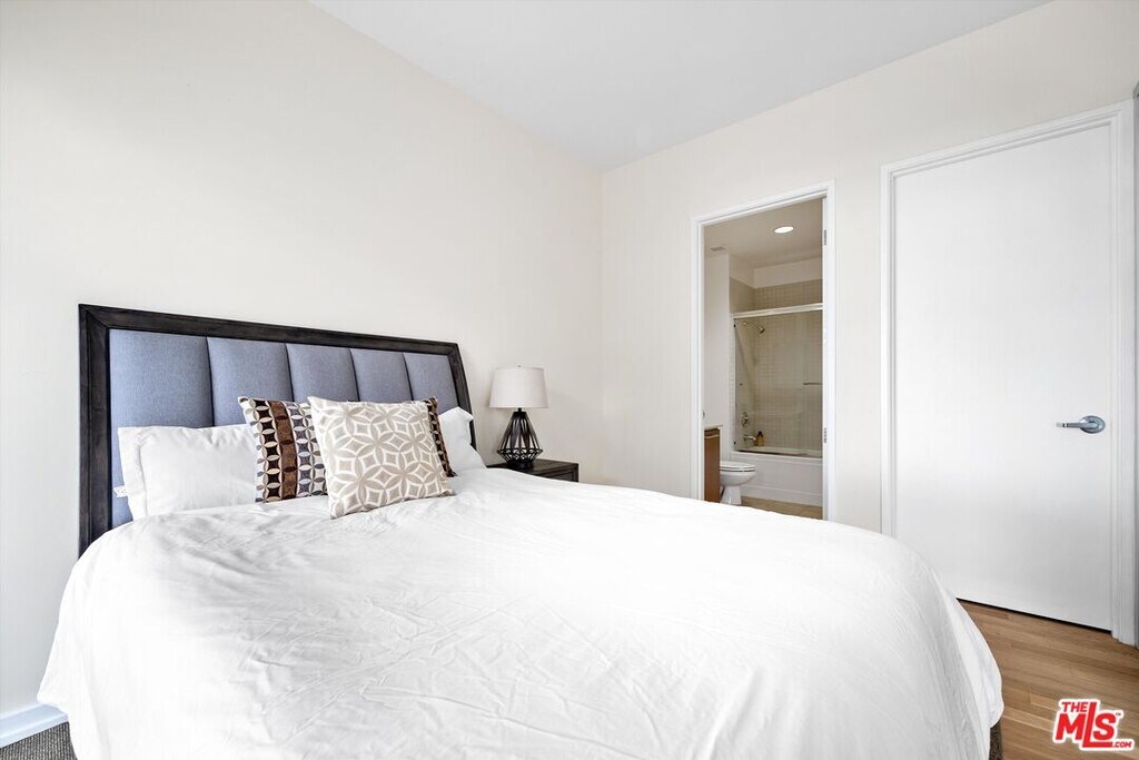 Experience elevated living at Sky Lofts, where luxury meets sophistication. This exquisite residence boasts dramatic southwest-facing views framed by floor-to-ceiling windows, perfectly complementing the open living and dining layout. The sleek gourmet kitchen shines with Caesarstone countertops, stainless steel appliances, and a stylish breakfast bar. Both private bedrooms feature ensuite baths, with the primary suite offering a spa-inspired retreat, complete with a soaking tub, separate shower, and an expansive walk-in closet. Sky Lofts, a modern 22-story masterpiece, welcomes residents with a private entrance, a grand lobby, and an indulgent two-story height guest lounge equipped with a kitchen for entertaining. Additional amenities include a private screening room, state-of-the-art fitness center, 24-hour attended lobby, and high-speed elevators. Two non-tandem reserved parking spaces complete this exceptional offering. Embrace the vibrant energy of Downtown LA while enjoying the serene sophistication of your home in the sky. Most utilities are included. MLS# 25533011