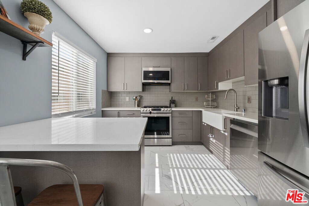 - Welcome to this stunning 2-bedroom, 3-bathroom townhouse nestled in the heart of the Cabrini Villas! As you enter the home, the living area features natural lighting creating a bright and inviting space for both relaxing and entertaining. The modern kitchen boasts with stainless steel appliances, as well as countertop space to enjoy breakfast with the family .Upstairs, you'll find a spacious master suite with en suite bathroom and walk-in closet. Another spacious bedroom is conveniently located upstairs that is prefect for a kids room, guest room or even an office space. Step outside to enjoy the private patio directly from the primary bedroom as well as another private patio on the main living area. Easy access to shopping, nightlife, Burbank airport, and freeways. Pictures taken previously with seller's furniture. Listing provided by: Minas Mike Boyajyan of MBE Realty, Inc.MBE Realty, Inc. LA State License 1783567 Listing posted by Fernando Valen [SYNDID 4143586 11142025]