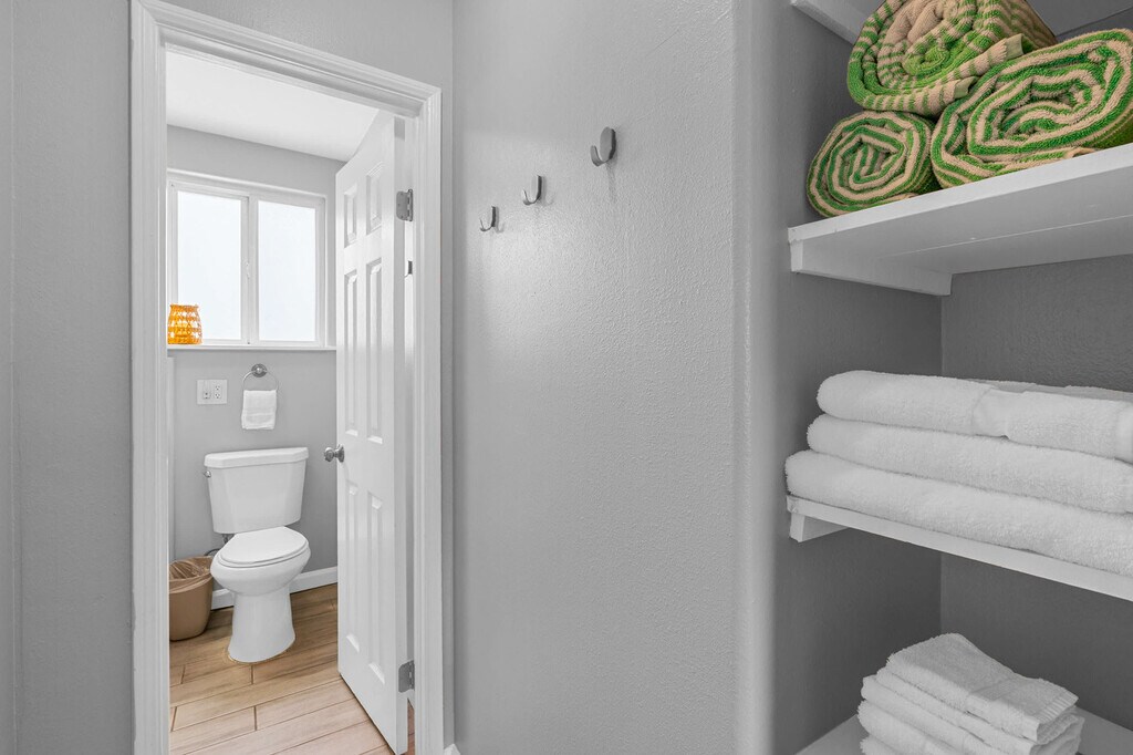 Feel at home in this 2-bedroom, 1-bath home that offers the perfect blend of modern charm and coastal comfort. With its prime location between the beach and the bay, you're ideally situated to enjoy all the area has to offer. This home features a fully equipped kitchen, central air conditioning and heat, high-speed internet, black out curtains in both bedrooms, a fire pit table on the patio, a barbecue, an outdoor shower, a sound machine, and shared washer/dryer. Two parking spaces are available in the driveway. Located in the heart of Mission Beach, just 8 blocks from the famous Belmont Park and roller coaster, this apartment is within walking distance to a variety of restaurants and entertainment. It's situated just a few steps from both the beach and the bay, offering easy access to paddle boarding, surfing, and miles of boardwalk. Occupants exceeding five will not be permitted to stay past 10 pm. No more than two guests above the stated number of occupants in your reservation are allowed on the premises at any time. If guests stay beyond this limit, a charge of $300 per person will be applied. There is no smoking of any kind (tobacco, marijuana, hookah) on the property. The fine is $300. Quiet hours are between 10 pm and 8 am. Registration Number: STR-01809L [SI]