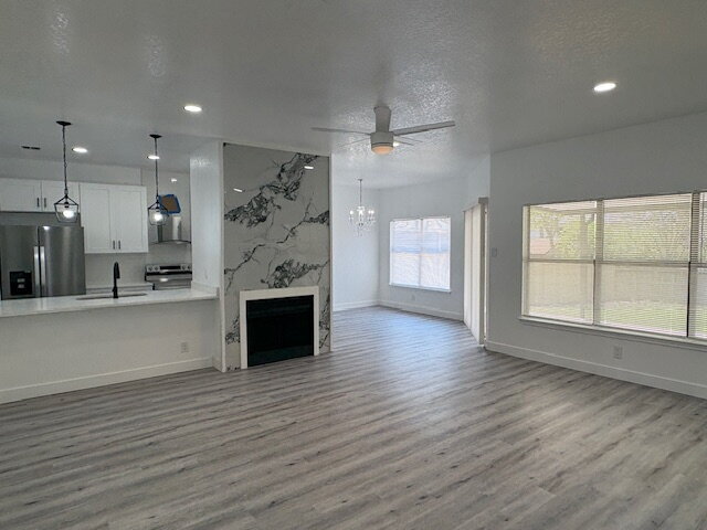 ***First Month Free*** Beautifully renovated home at 8046 Wayword Trail, San Antonio, TX 78244. This inviting 3-bedroom, 2-bathroom offers a spacious 1,147 square feet of wide open living space. Discover a warm atmosphere with fireplace that instantly feels like home. The open layout seamlessly connects the living areas, dining and kitchen. Newly updated kitchen and stainless steel appliances and white quartz counter tops. Both full bathrooms are updated and designed with convenience in mind. Located in a friendly neighborhood, this property offers a blend of tranquility and accessibility to local amenities. Whether you're lounging indoors or exploring the scenic trails at the park nearby, Make 8046 Wayword Trail your next home.