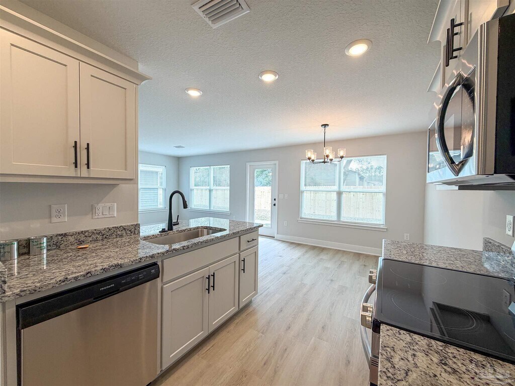 3 bedroom,2.5 bath BRAND NEW long-term rental home with attached two-car garage located 10 mins from NAS Pensacola front gate,10 mins from Corry Station and 20 mins from downtown Pensacola. The 1,648 square foot home features a large living room downstairs,as well as a half-bath in the hallway as you enter from the garage. The kitchen has granite countertops and stainless steel appliances (Refrigerator to be installed). All three bedrooms are located upstairs,with the primary bedroom situated on one side and featuring two closets. The primary bath has a double vanity. Bedrooms 2 and 3 are on the opposite side of the 2nd floor and are of ample size,also containing closets with plenty of space. All Hometown Properties of the Gulf Coast residents are enrolled in the Resident Benefits Package (RBP). RBP is $50 per month and includes liability insurance,credit building for on-time rent,up to $1M ID theft protection,HVAC filter delivery (where applicable),resident rewards,and on-demand pest control. More details provided with application.