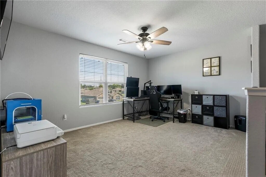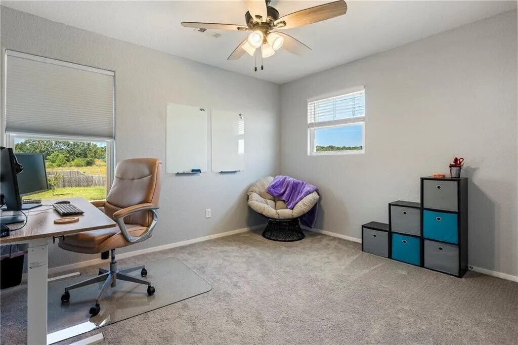 This well-maintained 3-bedroom, 2.5-bath home sits on a north-facing corner lot in Silver Meadows. Features include quartz countertops throughout, durable LVP flooring in the main living areas, and carpet in the bedrooms and upstairs flex space. The main level includes a versatile room near the entry—perfect for a home office, workout area, or creative studio—while the spacious upstairs flex room can serve as a second living area, playroom, or media space. The home is all-electric and includes smart upgrades like a WiFi oven, smart faucet, keyless entry, garage door opener, security cameras, and safety sensors for peace of mind. All bedrooms are upstairs, making nighttime routines a breeze. With its modern finishes, flexible layout, and built-in conveniences, this home is ready for your next chapter—come see if it’s the perfect fit for you!