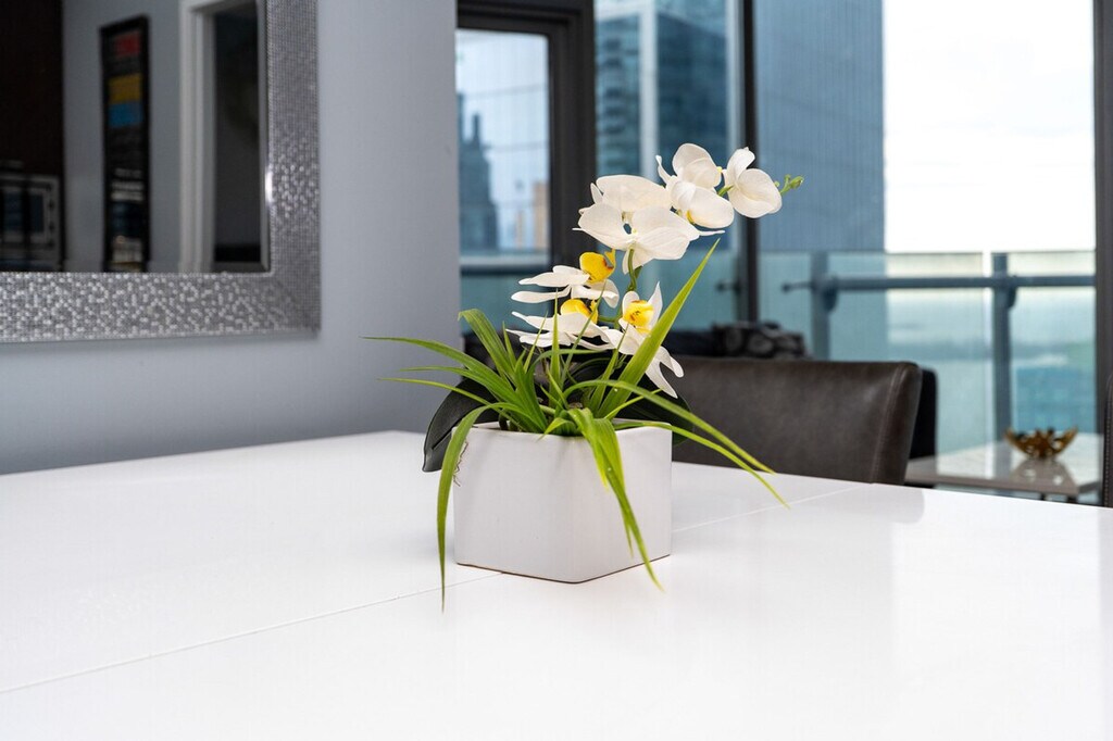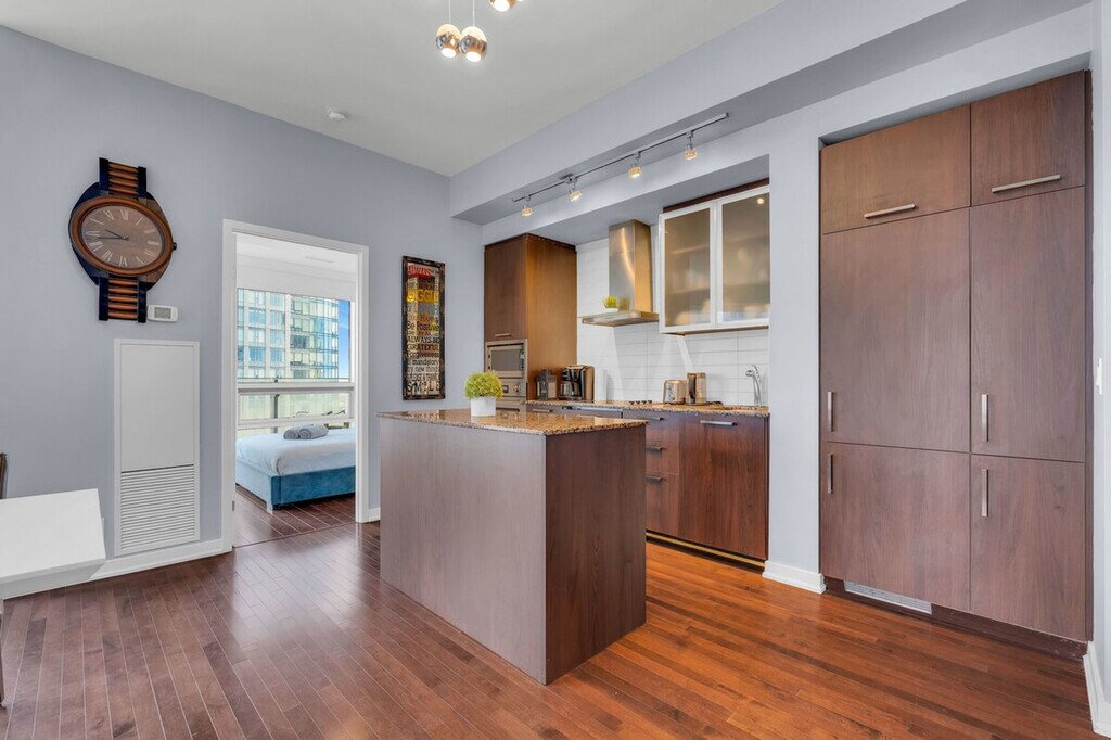 The advertised rate of C$4,224/month is the lowest available price, based on a 1 month(s) stay with a move-in date of November 20, 2026. Rates vary depending on the duration of stay, season, and other parameters. For exact pricing and additional pricing components, please visit our website and enter your desired move-in and move-out dates. The rate is applicable when billed upfront; it can be higher if billed in multiple payments. Feel right at home in this beautiful 1-bedroom condo located in the heart of the city on the 50th floor, featuring floor-to-ceiling windows in the bedroom and on two sides of the living room, along with a balcony offering an unobstructed view of downtown. This comfortable suite has a fully functional kitchen with tea, coffee, a kettle, coffeemaker, and toaster. A washer and dryer are available with supplies. The bathroom includes towels, shampoo, conditioner, body wash, a hair dryer, and other toiletries. Paid underground parking with in/out privileges is available upon request for $20 per night with a minimum booking of 15 nights. A travel crib (for babies 0-18 months) and bed rails are available for $5 per item per night. Pets are allowed with a fee of $10 per pet per night. This prime location is steps from the Scotiabank Arena and Union Station, and within walking distance of the Skydome, CN Tower, Aquarium, and Financial District, as well as hundreds of restaurants. It's also close to the Eaton Centre and Queen Street fashion district, with easy access to the subway, GO station, a grocery store, LCBO, and TD bank. The minimum age for booking is 18 years. Check-in is after 3PM, and check-out is before 11AM. Any type of smoking (cigarettes or marijuana) is prohibited inside the unit or building. If the alarm is triggered and the smell of any type of smoke is discovered, the partner has the right to cancel your reservation immediately and charge you a $150 service call and $200 cleaning fee. The unit is equipped with video surveillance to the front door only and a noise detector. If the number of guests exceeds the number specified in the reservation, the partner has the right to cancel your reservation immediately without any refund. [SI]