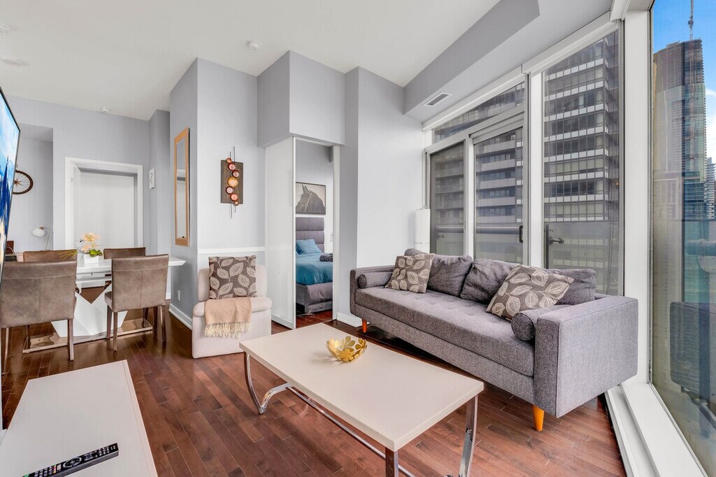 The advertised rate of C$9,191/month is the lowest available price, based on a 30 day(s) stay with a move-in date of October 2, 2026. Rates vary depending on the duration of stay, season, and other parameters. For exact pricing and additional pricing components, please visit our website and enter your desired move-in and move-out dates. The rate is applicable when billed upfront; it can be higher if billed in multiple payments. Feel at home in this fully furnished apartment, located in the heart of downtown Toronto and close to all major attractions. This unit offers approximately 600 ft² / 55m² of space. This space features high-speed fiber internet and Wi-Fi, a smart HD TV, a full bathroom, full sets of hotel-quality bedding and fresh towels, a fully equipped kitchen with appliances including a fridge and stove, and an in-suite washer and dryer. Free secured parking is available for one car. This area is the most popular among visitors thanks to its proximity to all that Toronto has to offer, including landmarks like the CN Tower, Rogers Centre, and Metro Toronto Convention Centre. You'll also be a short walk away from Harbourfront and the lake. Nearby attractions within walking distance include Ripley's Aquarium, the Hockey Hall of Fame, the Financial District, Scotiabank Arena, and the Toronto Islands. The unit is centrally located only 500m away from Union Station, the hub for all transit into downtown Toronto, including TTC (Toronto Transit Commission), VIA Rail, GO Transit, and Union Pearson Express. Uber and Lyft are widely available in downtown Toronto, providing convenient and affordable transportation options for exploring the city. Major attractions can easily be reached by walking or renting a city bike. Smoking is strictly forbidden on the property anywhere, and failure to comply may result in a penalty up to $1000. No more than the stated number of guests in the reservation may stay overnight, unless agreed otherwise. Failure to report the accurate number of overnight guests may result in an immediate cancellation of your stay. Pets, parties, or illegal drugs of any kind are not allowed anywhere on the property (inside or outside). Late checkout beyond the scheduled check-out time will incur fees. [SI]