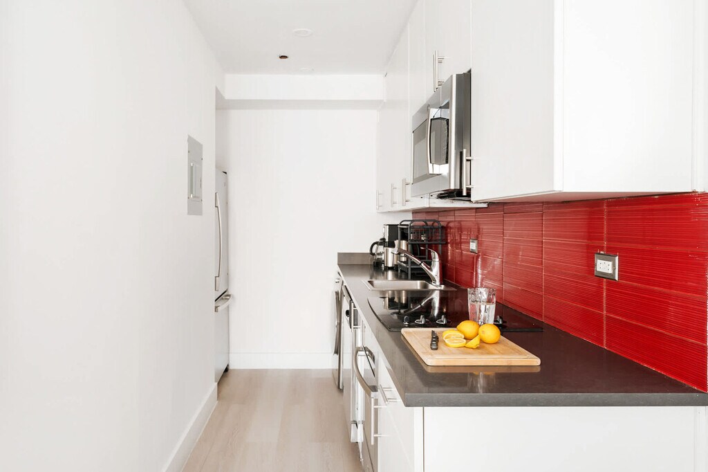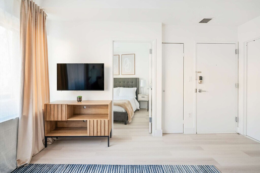 The advertised rate of $5,998/month is the lowest available price, based on a 1 month(s) stay with a move-in date of April 6, 2026. Rates vary depending on the duration of stay, season, and other parameters. For exact pricing and additional pricing components, please visit our website and enter your desired move-in and move-out dates. The rate is applicable when billed upfront; it can be higher if billed in multiple payments. This beautifully renovated, fully furnished 1-bedroom apartment in the heart of Hell’s Kitchen offers a stylish and comfortable living space with modern furniture and a thoughtfully designed layout. Featuring a fully equipped kitchen, in-unit washer and dryer, fresh towels, heating, and air conditioning, it ensures a seamless stay. Enjoy beautiful city views through large windows. Located in a safe and secure neighborhood, the elevator building with only two apartments per floor offers privacy and peace of mind with smart lock access. Move in and feel right at home! Experience modern city living in this beautifully renovated, fully furnished 1-bedroom apartment located in the heart of Hell’s Kitchen (Midtown West). Designed with sleek, contemporary furniture, this stylish unit features a spacious layout. Enjoy breathtaking city views through large windows or step onto the Juliet balcony for a breath of fresh air. The apartment boasts a fully equipped kitchen with all essential appliances, cookware, and tableware. Washer and dryer in unit, 43' smart TV, and high-speed Wi-Fi make it perfect for both short- and long-term stays. Additional comforts include fresh towels, heating, air conditioning, and an abundance of natural light. Set in a well-maintained elevator building with only two apartments per floor, you’ll enjoy privacy and tranquility while being in the heart of one of NYC’s most exciting neighborhoods. Located in the heart of Hell's Kitchen, this bustling neighborhood in Midtown Manhattan is known for its lively atmosphere, diverse food scene, and proximity to some of the city's top attractions. This area is a hub for theater and entertainment, with numerous Broadway theaters, comedy clubs, and music venues within walking distance. The nearby Hudson River Park provides a beautiful waterfront escape for running, biking, and outdoor activities, and the High Line elevated park is just a short walk away. The neighborhood is also known for its excellent dining options, with everything from casual cafes and bars to high-end restaurants serving cuisine from around the world. Additionally, this area is conveniently located near public transportation, making it easy to get anywhere in the city. Overall, Hell's Kitchen is a vibrant and exciting area with something for everyone, and it's the perfect place to experience the best of New York City. No smoking and no pets are allowed. [SI]