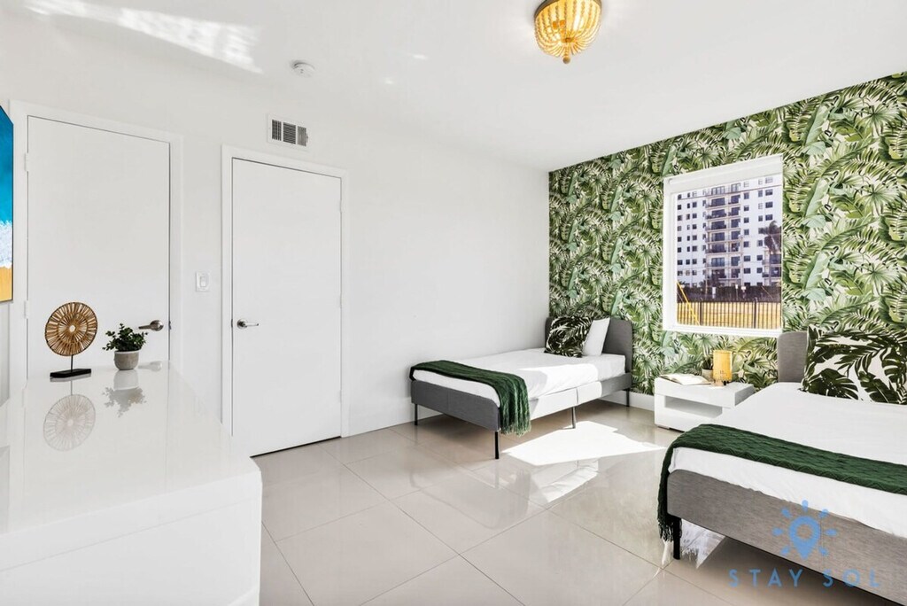 Steps from the legendary Hollywood Beach Broadwalk, this modern apartment offers a stunning bay view and is surrounded by bars, live music events, and wonderful restaurants, all within walking distance. The apartment features a master room with two queen-size beds and a second bedroom with two single beds, accommodating up to six guests. Enjoy the convenience of free parking with one designated self-parking spot. This modern apartment provides all the comfort you need to feel at home, making it a perfect staycation for family and friends. The fully equipped kitchen includes a stainless steel refrigerator, microwave, dishes, coffee maker, and toaster. The apartment also features two spacious bedrooms with a hairdryer and iron/ironing board, and a bathroom with toiletries, towels, and a hairdryer. A washer and dryer are available inside the unit. A Pack and Play crib is available upon request. Located along North Ocean Drive in the lively community of Hollywood Beach, this apartment puts travelers at the heart of the action. Within walking distance of the famous Hollywood Beach Broadwalk and the beach, guests can enjoy exciting activities such as jet skiing, fishing, sailing, biking, and golf. Hollywood Beach offers a small-town feel with unique bars and restaurants like The Le Tub Saloon, GG's Waterfront Grill, El Tayta, and Taverna Opa. South Beach and Miami are a short drive away. Check-in is available any time after 4 PM, and check-out is required by 11 AM. Early check-in or late check-out may be available upon inquiry. You may experience increased noise on weekdays during the daytime due to ongoing nearby construction. Exterior security cameras are on the property. Swim at your own risk, and children must be supervised. [SI]