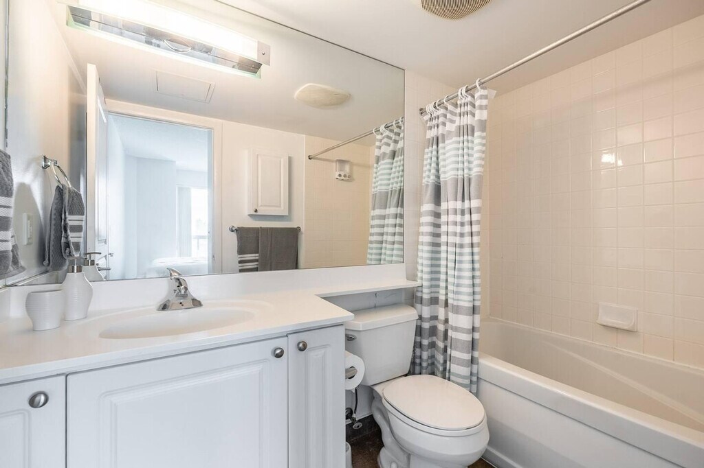 Immerse yourself in Toronto’s bustling energy! This apartment provides a cozy space to relax and feel at home after a day filled with new experiences. Enjoy the view of downtown Toronto from the balcony on the 22nd floor. This comfortable suite has everything you need to make you feel right at home, including a fully functional kitchen with supplies (tea, coffee, kettle, coffeemaker, toaster), a washer and dryer with supplies, and two bathrooms with towels, shampoo, conditioner, body wash, a hair dryer and other toiletries that you may have forgotten at home. Paid underground parking with in/out privileges is available upon request for $10 per night, and a travel crib (for baby 0-18 months) and bed rails are available for $5 per item per night. If you plan to stay with pets, please confirm the opportunity prior to booking; there is a pet fee of $10 per night for one pet. The condominium building is a 15-minute walk from CN Tower and under a 20-minute walk from Yonge&Dundas Square, making it the best area for business travelers as well as for sightseeing. The unit is equipped with video surveillance to the front door only and a noise detector (no cameras are inside the unit). The front door will be checked for the number of guests as well as the noise level to avoid any type of parties. If the alarm is triggered and we discover the smell of any type of smoke, the partner has the right to cancel your reservation immediately and charge you $150 for a service call and $200 for cleaning fees. Pets are allowed with a fee of $10 per pet per night. [SI]