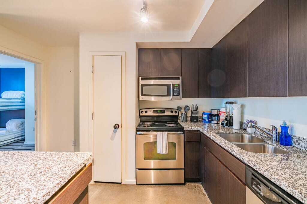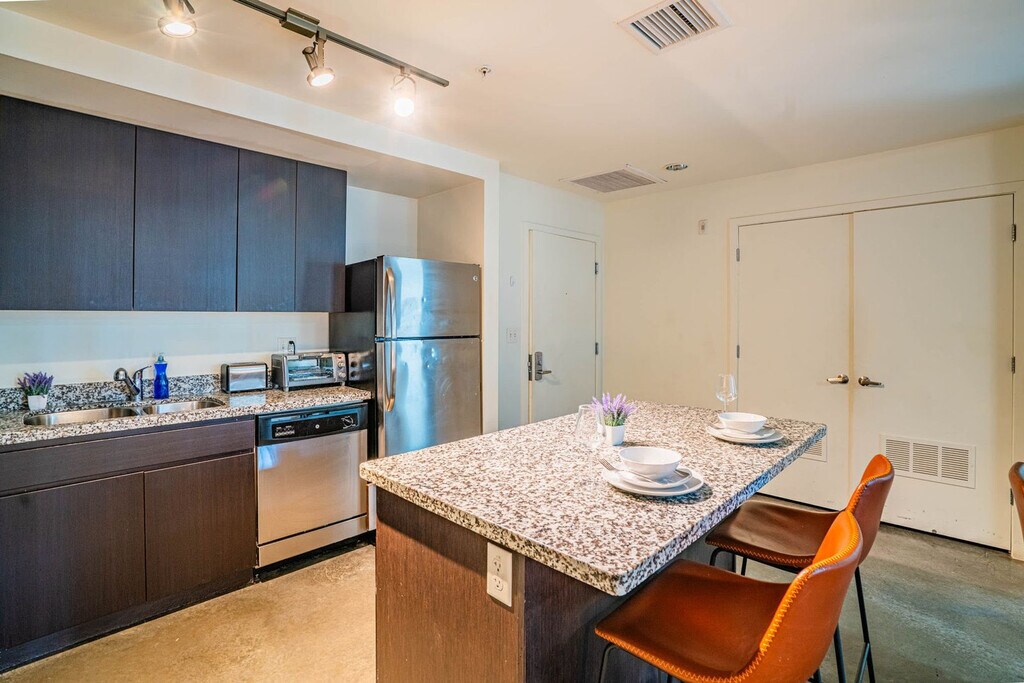 Stay in style in Downtown Phoenix with this chic and cozy 1-bedroom apartment. Nestled in a quiet neighborhood, this apartment offers a prime location just steps away from vibrant pubs, trendy restaurants, and top attractions. Whether you're here for business or leisure, enjoy high-speed Wi-Fi, modern amenities, and a relaxing atmosphere. The apartment features a stylish, contemporary design and a cozy, inviting vibe. This stylish 1-bedroom apartment offers the perfect blend of comfort and modern convenience right in the heart of Phoenix. The living room includes a sofa bed for additional guests and a 55" 4K HDR Smart TV for entertainment. The fully equipped kitchen comes with modern appliances, a dishwasher for quick clean-ups, and a dining table perfect for shared meals. The bedroom features a queen-size bed with premium linens, a dedicated desk for work, and soft lighting that creates a peaceful, calming atmosphere. The bathroom is sparkling clean and fully stocked with fresh towels and toiletries, offering a bath and shower combo for ultimate relaxation. A reserved parking spot ensures a stress-free check-in experience. Pets are welcome in designated units with a cleaning fee of $25 per pet per night for 1-7 nights, $200 total for 8-29 nights, and $300 total for 30+ nights. There is a maximum of 2 pets allowed, with certain breed restrictions. Unapproved pets incur a $500 fee. Early check-in/check-out may be available for a fee of $35 for up to 2 hours. Lost or unreturned keys will incur a $500 fee. Located in Downtown Phoenix, this apartment is walkable to dining, nightlife, and attractions. Nearby attractions include the Phoenix Convention Center (0.6 miles), Chase Field (1 mile), Footprint Center (0.8 miles), Roosevelt Row Arts District (0.3 miles), and Phoenix Sky Harbor Airport (4.5 miles). Quiet hours are between 10pm and 8am every day. Noise complaints or violations may result in cancellation of booking and removal from the property without refund. There is a strict no-party policy, and unauthorized guests will incur a $100 fine per guest. Smoking is prohibited on the property, including balconies and around the building, with a $500 fine for violations. The parking pass must be printed, and guests are responsible for any parking violations. Pets are allowed depending on size or if they are service animals, with a $500 fine for unapproved pets. Additional cleaning fees may apply if the property is left excessively dirty. A $500 late check-out fee applies for delayed check-out without prior arrangement. Regular pest control is conducted, but occasional small bugs may be present due to seasonal changes. [SI]