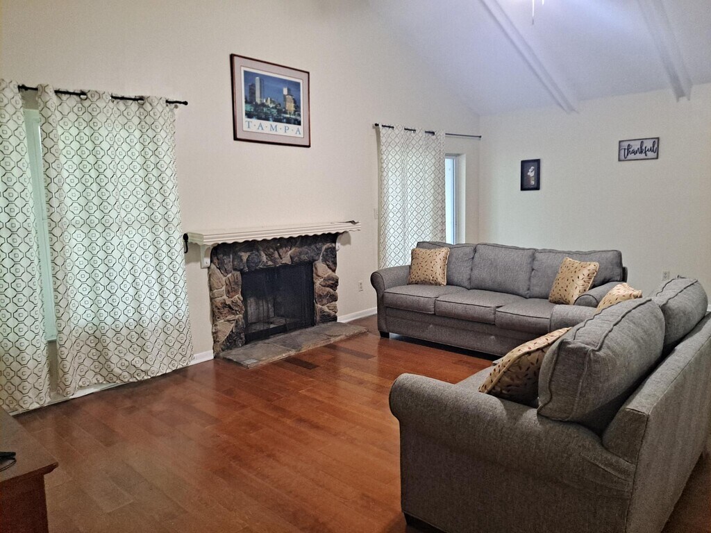 Step into a comfortable and charming 4-bed / 2-bath home in a sought-after Brandon location! Situated on a spacious lot with a screened-in sunroom and pool, this home offers comfortable living with convenient access to everything: This home is fully furnished with 4 bedrooms, 2 baths (updated bathroom), multiple flat screen TVs with streaming services, and a fully equipped kitchen: stove, dishwasher, fridge, and microwave. The washing machine and dryer are in the garage. The master suite boasts a spacious walk-in closet. The second and third bedrooms contain a full-size bed, a nightstand, and a closet. the fourth bedroom is furnished with two twin-size beds, a closet, and a nightstand. An attached two-car garage may also be available for your use. Spacious living room with sliding door opening to enclosed living room, opening to the fully fenced spacious backyard. "Your private oasis awaits! Relax and entertain in your very own sparkling swimming pool, ready for lounging under the Florida sun. Access the pool directly from the screened-in Florida room, ideal for seamless indoor-outdoor living. Set in a spacious, fenced backyard, this serene space ensures both peace of mind and total privacy. Best of all, monthly pool maintenance is included to keep the water shimmering beautifully throughout the year." This home features a spacious enclosed lanai, perfect for year-round relaxation and entertaining. Centrally located home with easy access to I-75 and I-4. Easy access to Bush Garden Tampa 14-15 miles by car - ~23 minutes USF Tampa Campus -14 Miles by car - ~ 20 minutes, ideal for students or faculty. Brandon Hospital is 2 miles by car - 7 minutes Moffit Cancer Center 15.8 miles by care - 29 minutes Disney World in Orlando is just about an hour's drive away - perfect for weekend getaways. Top-rated schools just minutes away Brandon High, Limona Elementary, Mann Middle, plus private options like Brandon Academy. Essential shopping nearby quick rides to Walmart, RaceTrac, and local specialty markets. Premier retail & entertainment Brandon Exchange Mall, iFLY, TopGolf, and more, just a short hop down State Road 60. Parks & recreation galore enjoy Brandon Park's courts and trails or relax at nearby Lakeview Village Park or Brandon Park's green space. Easy commuting near major highways, including I-75 and the Selmon Expressway, facilitates stress-free travel across the Tampa Bay area. This home offers the perfect balance of everyday convenience and fun-filled destinations. Whether you're a family, professional, or student, you will love the combination of a central location and your own private oasis. The lot size is about 0.32 acres, giving you plenty of backyard space around the pool and privacy. Ready to move in on 10/01/2025. Deposit due at signing, rent includes pool maintenance services. Renter is responsible for utilities, electricity, and water. Lawn service. Must have renters' insurance, no smoking allowed.