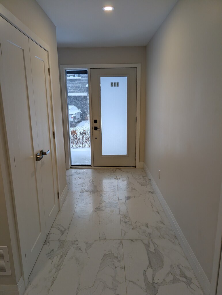 Welcome to your modern, executive rental at 812 Star Private in highly sought-after Kanata. This beautiful 2-bedroom, 4-bathroom (2 full, 2 partial) home was built in 2021 and offers contemporary style, premium finishes, and a fantastic location near amenities. Property Highlights Free snow removal for the winter 25/26! Modern Design: Experience bright, open-concept living spread across three spacious stories. Gourmet Kitchen: The centerpiece of the main living floor is the stunning kitchen featuring: Large island with elegant, white-veined stone countertops and bar seating. Sleek, light-toned cabinetry and a stylish subway tile backsplash. Stainless steel appliances including a refrigerator, stove, oven, microwave, and dishwasher. Open Living Area: The second level boasts an open-concept living and dining area with beautiful light hardwood flooring throughout and large windows for exceptional natural light. A sliding glass door provides access to a balcony/terrace area (as seen in the first image). Bedrooms & Bathrooms: 2 spacious bedrooms upstairs. Master Retreat: Includes a private ensuite bathroom and a dedicated walk-in closet. Total of 4 Bathrooms (2 full and 2 partial) ensuring convenience for residents and guests on every level. Upscale Finishes: Enjoy high-end fixtures, modern lighting, recessed pot lights throughout, and contemporary white trim and doors. Convenience: In-unit stacked washer and dryer conveniently tucked away in a closet. Stylish Entry: The ground floor features a bright entry foyer with beautiful marble-look tile flooring and a closet, perfect for greeting guests and storing outerwear. Location & Neighbourhood Located in the Kanata neighbourhood, 812 Star Private offers unparalleled access to amenities: Shopping & Dining: Just a short distance from major commercial areas including Hazeldean Mall, and within walking distance of grocery stores like Farm Boy and the new T&T Supermarket. Parks & Recreation: Close to local parks and walking paths. Transit: Excellent access to local transit routes. Rental Details Bedrooms: 2 Bathrooms: 4 (2 Full, 2 Partial) Stories: 3 Utilities: Tenants are responsible for all utilities (Hydro, Gas, Water/sewer). This virtually new, modern townhome is an ideal rental opportunity for professionals or a small family seeking luxurious, maintenance-free living in Kanata. Interested in making this stunning property your next home? Contact us today to schedule a viewing!