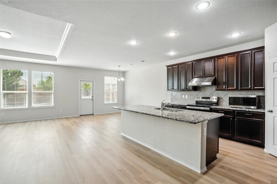 This 2017 built stunning home in prestigious Keller ISD boasts 4 bedrooms, 2.5 Bathrooms, an office and a spacious game room. The first floor features an open-concept living room with a brick fireplace and luxurious vinyl plank flooring, a gourmet kitchen with a large island, walk-in pantry, mudroom with sink, and a separate home office next to the front door. It has a generous size primary bedroom with both bathtub and walk-in showers, dual sinks and a spacious walk in closet. Upstairs has a huge game area, a full bathroom with two sinks, and three spacious bedrooms with good size walk-in closets in each. Enjoy a large backyard of a premium corner lot with covered patio and extended concrete adorned with peach and pear trees producing savory fruits every season. This lovely, ready-to-move-in residence in West Fork Ranch, features two community swimming pools complete with splash pads, outdoor pavilions and grilling areas, a community park with children play, and walking paths. It is ideally located just minutes from I-35 W, Presidio Junction, Alliance Town Center and Sunset Valley Elementary school. LOT OF UPGRADES!!Upgrades include extended concrete in patio, Vent-Out Range hood, New vinyl flooring in first floor 06-2025, New carpet on 08-2025, new paint on 07-2025, new electric range oven on 07-2025. Builder upgrades during purchase include elevation upgrade, mudroom sink, and fireplace. Refrigerator, washer and dryer are negotiable.