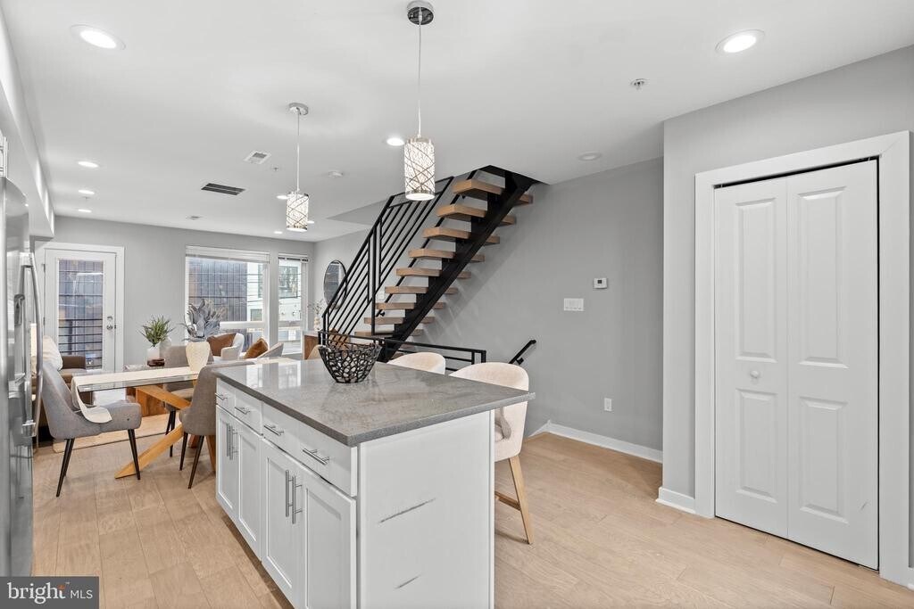 Welcome to 815 Perkiomen Street, Unit 14, a luxurious 3 bedroom, 2.5 bathroom townhouse with a full sized attached garage in the heart of Philadelphia's vibrant Fairmount/Francisville neighborhood! This light-filled, modern home was recently built in 2020, and includes a green rooftop deck with gorgeous 360 degree views of the city skyline! Walk into the main entrance of the home, and you will find a coat closet and powder room. Continue up to the main living level and you will immediately be drawn to the abundance of natural light from the large windows. The gourmet eat in kitchen is the heart of the home featuring custom wood cabinetry, quartz countertops, GE stainless steel appliances and a tile backsplash. The large center island transitions beautifully to the main living area. The main living area is all open concept, with access to the balcony, perfect for everyday living and entertainment. The second floor boasts two bedrooms, a full bathroom with a bathtub, and a laundry closet. The third floor is a private primary suite, including a full bathroom with a double vanity, an oversized shower with glass doors, and a linen closet. And last but not least, ascend up the spiral staircase, to the amazing rooftop deck with spectacular views of Center City and beautiful sunrises and sunsets! This home has beautiful finishes throughout including engineered hardwood throughout, an open riser floating staircase, and ample overhead lighting. Take advantage of the walkability of this home, and the ultra convenient location just steps away from amazing restaurants, as well as playgrounds, the Art Museum, Fairmount Park and the Schuylkill River.