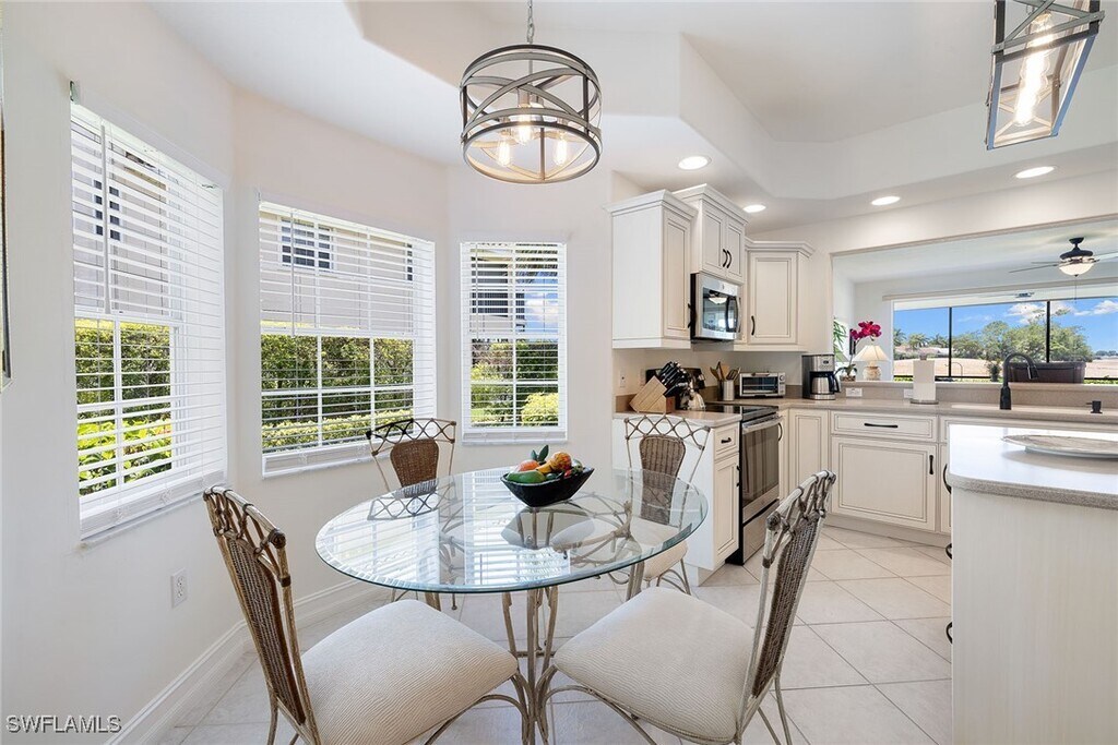 Lovely 2-bedroom condo in Saratoga Lely Resort on the first floor. With your screened lanai,you will enjoy the comfortable white leather couches,a beautiful view of the golf course from the living and dining areas,and extra living space. The king-size bed is in the primary room with a full bath and walk-in shower. The queen in the guest bedroom has very charming and comfortable décor. Community pool and spa…you will love this location right next to Player's Club and Spa. Visit historic Naples for shopping and dining on 3rd and 5th,close to the Naples and Marco beaches.