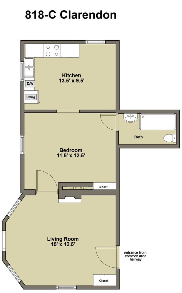 Model: D - 818 Clarendon St$1,3451 Bedroom, 1 Bath, 578 sq ftAvailable August 7, 2026![]()
