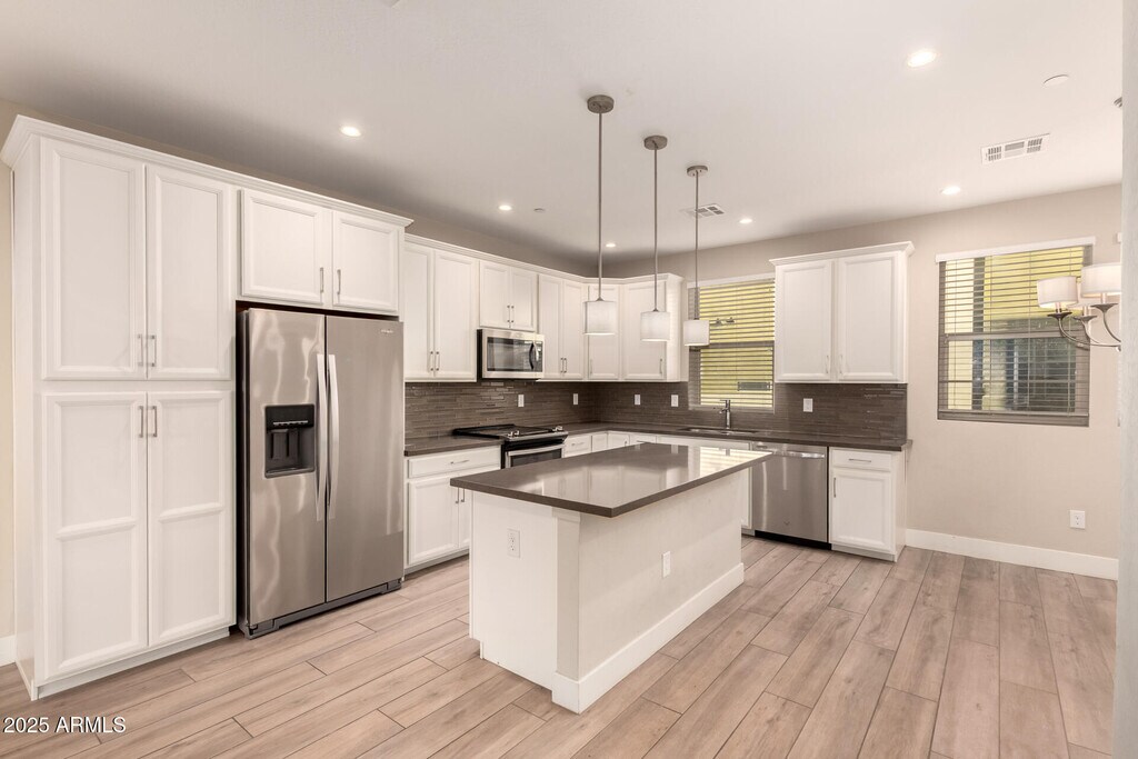 Fantastic location close to freeways,restaurants & entertainment. Experience the style,convenience,and comfort of this home,featuring a spacious and inviting layout with tile flooring,recessed lighting,an amazing amount of natural light,and a neutral palette to create a cozy ambiance throughout. Kitchen is equipped with white,soft-close cabinetry adorned with crown molding,granite countertops,SS appliances,and an island with a breakfast nook for those quick bites and casual conversations. The main bedroom boasts a walk-in closet and an ensuite with double sinks. The extra room downstairs can be used as an office,flex space,or an additional guest room for convenience.