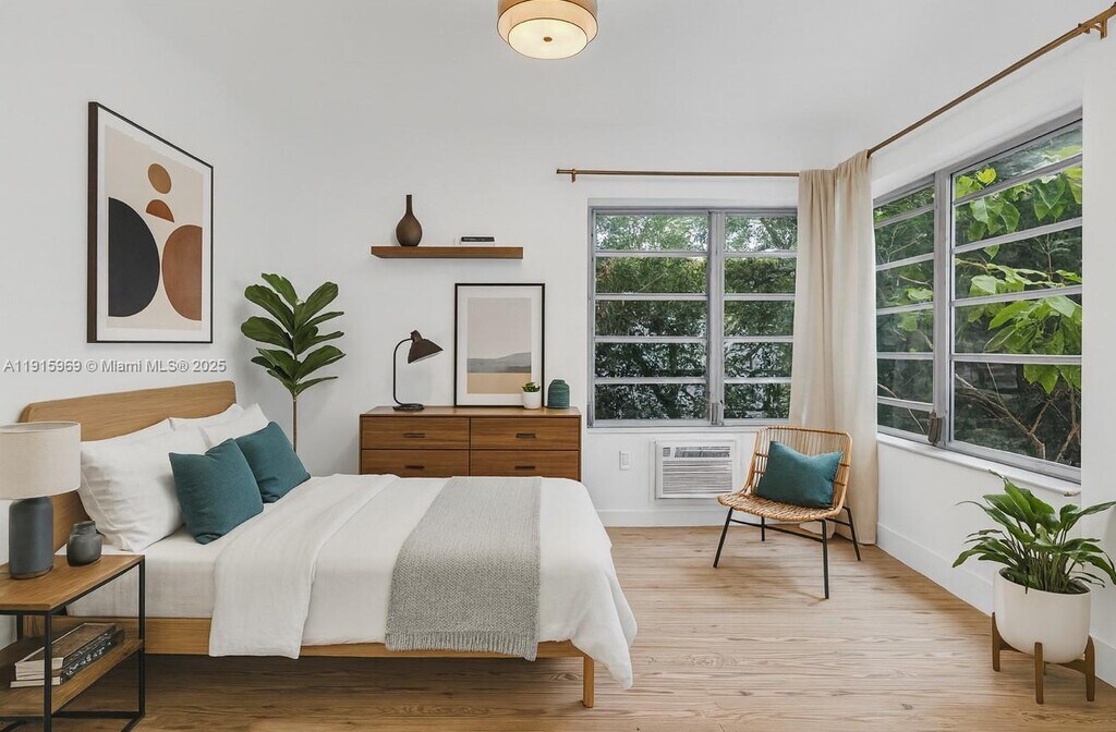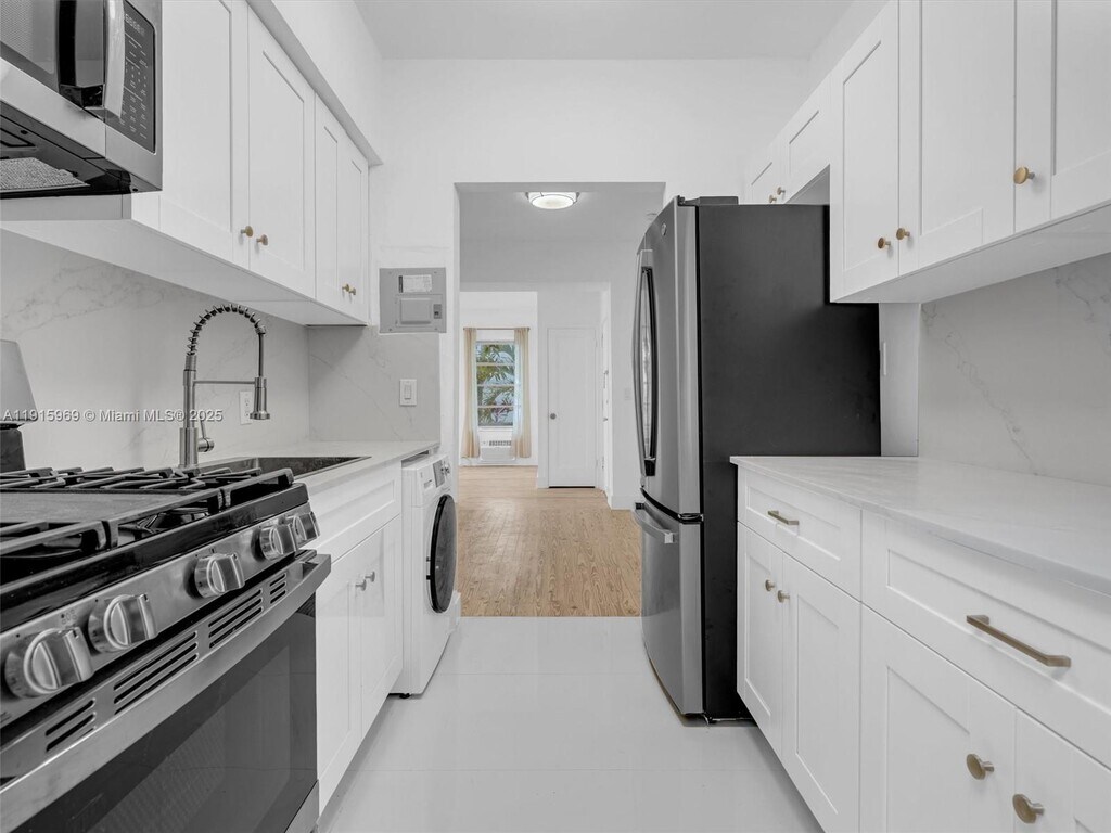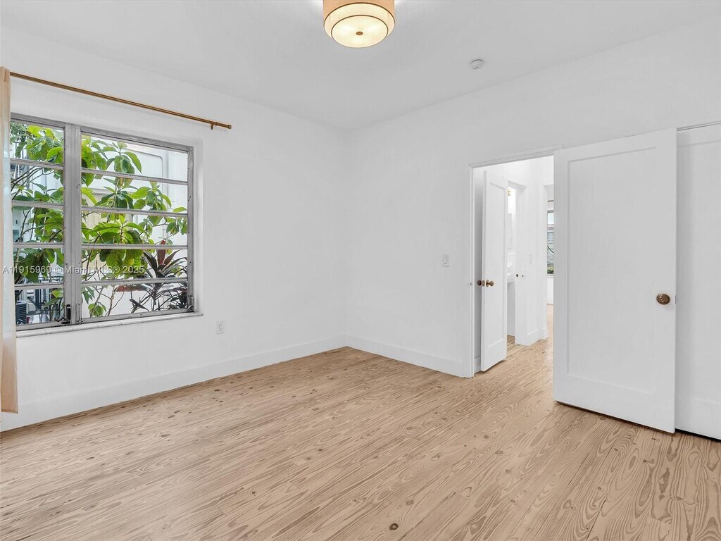 Incredibly charming and spacious one-bedroom condo available now. This gem is delivered unfurnished and features a brand-new, fully renovated kitchen with never-before-used appliances, beautifully refinished wood floors, fantastic natural light, in-unit washer/dryer, high ceilings, four large closets, updated bathroom and a versatile den that can be used as a dining room, office, or guest bedroom. Enjoy generously sized rooms perfect for entertaining, along with peaceful garden views from an abundance of windows. Ideally situated in a quiet, boutique Art Deco building on tree-lined Jefferson Ave—just blocks from Flamingo Park, the ocean, Lincoln Road, restaurants, and entertainment. Video available upon request. Schedule your showing today!