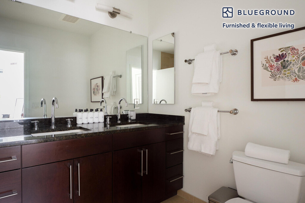 Discover the best of Tysons, with this one bedroom apartment in West McLean. It’ll be easy to simply show up and start living in this fashionably furnished apartment with its fully equipped kitchen, cozy living room, and our dedicated, on-the-ground support. (ID #WDC826) The advertised rate of $3,010/month is the lowest available price, based on a 12 month(s) stay with a move-in date of April 1, 2026. Rates vary depending on the duration of stay, season, and other parameters. For exact pricing and additional pricing components, please visit our website and enter your desired move-in and move-out dates. The rate is applicable when billed upfront; it can be higher if billed in multiple payments. Brokers are welcome to reach out. Were you looking for an unfurnished lease? Try Blueground instead and upgrade from unfurnished to furnished living: - Furnished at rates comparable to unfurnished - No setup or furniture costs - save thousands - Move-in ready - save time, just bring your suitcase Designed with you in mind Thoughtfully designed with bespoke finishes, modern furnishings, and a fully equipped kitchen, you’ll enjoy that “I’m home” feeling with this Blueground apartment. Whether you’re lounging in your stylish living room streaming the latest and greatest entertainment on the smart TV or premium wireless speaker, or getting some well-earned rest on the superior quality mattress with luxury linens, you’ll fall in love with everything this West McLean apartment has to offer. This apartment also offers in-apartment laundry. Sleeping arrangements King Bed, 70.8in/180cm Amenities Building amenities unique to this one bedroom apartment include an on-site: - BBQ Area - Dryer - Elevator - Swimming pool - Washing machine - Parking - Pets allowed Arrival and ongoing support The entire apartment is yours to enjoy! Throughout your stay, you’ll have access to our Client Experience team through the Blueground App. You can schedule additional cleanings, submit maintenance requests, and view our neighborhood recommendations with just a few taps. We’ll share all details upon confirmation of your stay. Other things to note Building amenities may have an extra cost. This Blueground apartment has flexible lease options, allowing you to book it for one month, a year, or more. Pets are welcome, though weight limits and breed restrictions apply and may incur fees. Parking is offered based on availability and is subject to a fee. We take great pride in ensuring every photo displayed is shot in our own units with our actual furnishings. That said, we regularly refresh our decor and furniture arrangement, which may differ from what’s pictured. [SI]