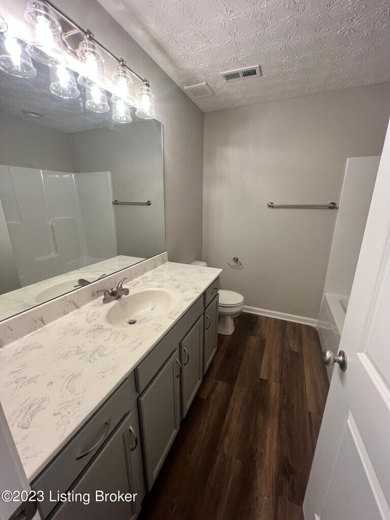 3 bedroom, 2.5 bath stand alone condo home located in the Highview area. Open floor plan with laminate hardwood floors through the living room and eat-in kitchen, Granite countertops, Stove dishwasher and microwave supplied, first floor primary bedroom with separate primary bath, 2 bedrooms and full bath upstairs, one car garage. Trash and lawn care included.