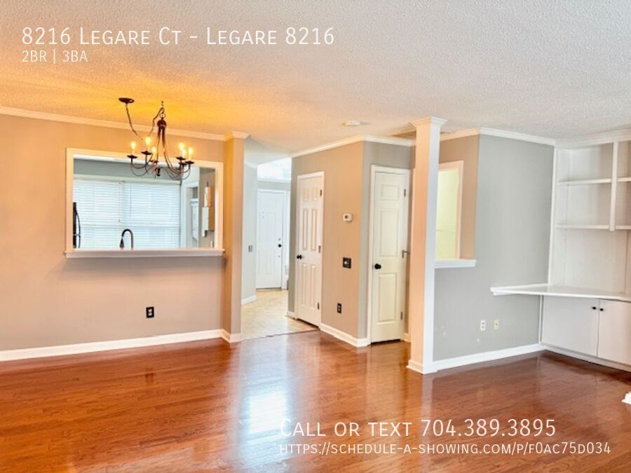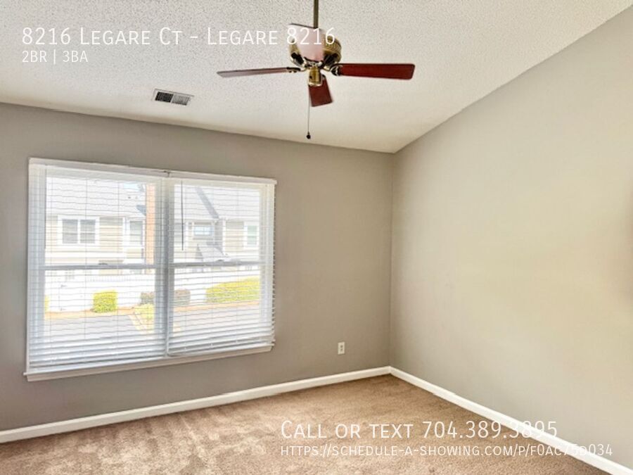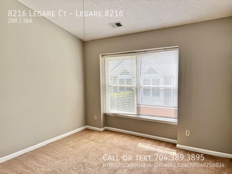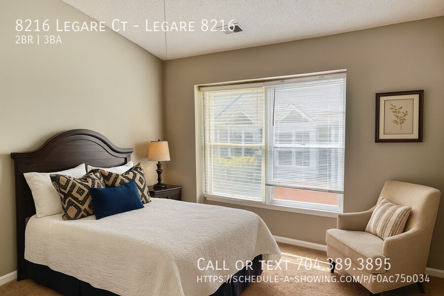Welcome to 8216 Legare Ct,a beautifully maintained 2-bedroom,2.5-bathroom townhome located in a quiet,well-kept community in Charlotte,NC. This residence offers the perfect combination of comfort,privacy,and convenience—ideal for residents seeking low-maintenance living in a prime location. This home features two generously sized bedrooms,each with its own private bathroom,plus an additional half bath for guests. The functional kitchen includes a stove,fridge,microwave,and plenty of cabinet space,making meal prep and entertaining easy. Stay comfortable year-round with central heating,air conditioning,and ceiling fans throughout. Enjoy your own private patio,perfect for quiet mornings or evening gatherings,and benefit from dedicated parking for easy access to your home. Situated in a peaceful Charlotte community,the home offers easy access to local shopping centers,dining options,parks,and major highways,making commuting simple. The location is perfect for those looking to balance quiet living with quick city access. Available now—experience comfortable,convenient townhome living. Schedule your viewing today to see all that 8216 Legare Ct has to offer. For more information or to arrange a tour,please contact us. Some images digitally enhanced for marketing.