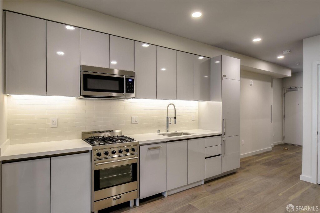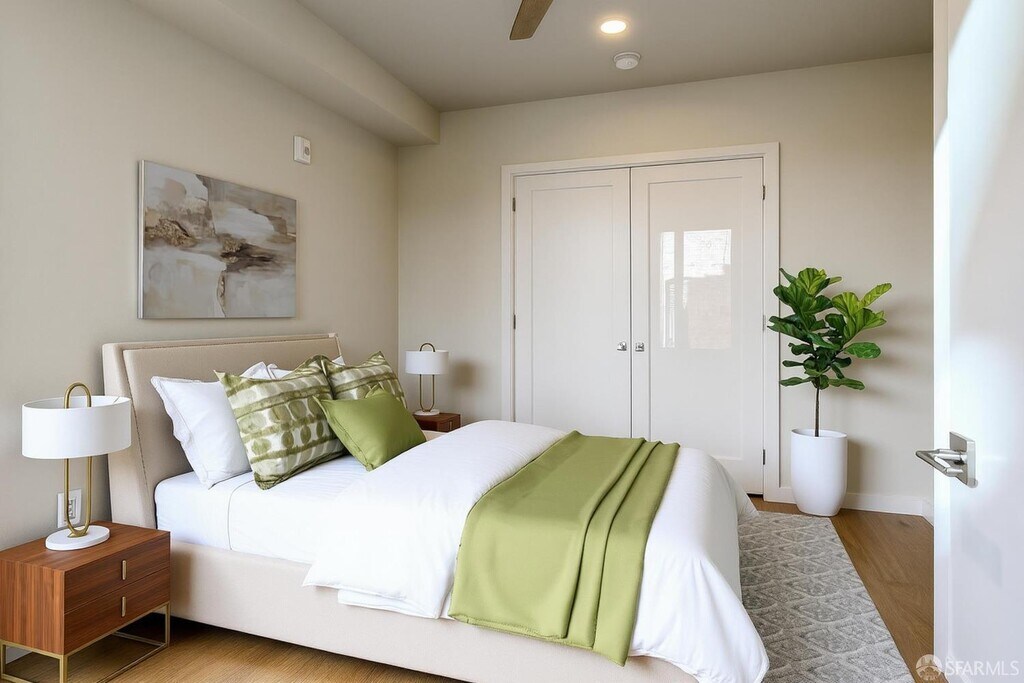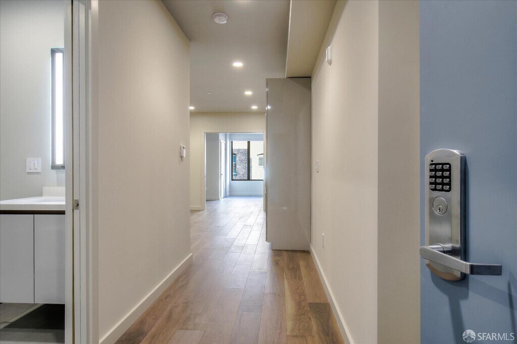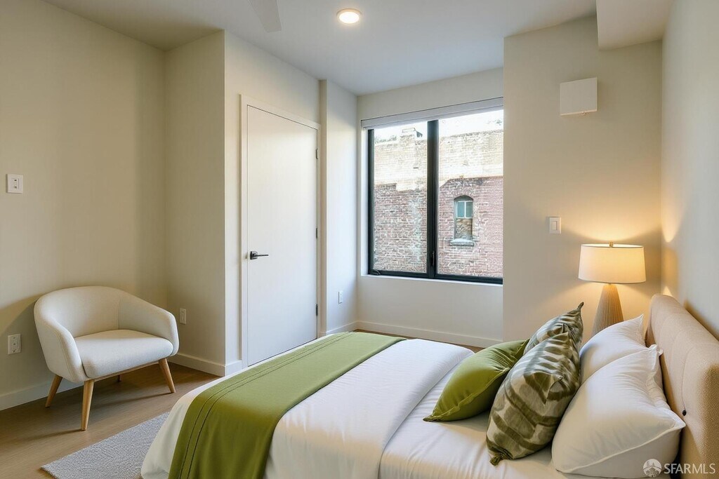 Conveniently located in Lower Nob Hill this boutique 14 unit building was newly constructed in 2020. It offers several amenities including common area roof decks with views, storage lockers and bike parking which are included with the rent. All units have radiant heat & in unit laundry. The building has Google Fiber Webpass internet service. This unit is pictured as a one bedroom but can be a two bedroom as both rooms have large closets, plus a good size hallway closet.Trader Joe's is located two blocks away with Crostini & Java on the corner of the block. Contact Margaret at for showings and inquiries about the property. Unit will be delivered unfurnished. Tenant pays PG&E and Renters Insurance. $65 Water & Garbage, $45 Google Fiber Webpass, in addition to monthly rent.