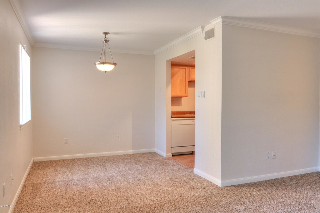 NO ADMIN FEES UPFRONT OF MONTHLY Beautiful 2 bedroom 2 bathroom condo located in highly desirable community of Belcara at McCormick Ranch. The unit was recently painted and carpeted. Unit has crown molding throughout. Located on the ground floor. Kitchen has stainless steel appliances with granite countertops. Formal dining room next to kitchen. Family room has access to cover patio with a palm tree. Master bedroom is of good size and has a walk-in closet. Covered parking,community pool,work out facility,close to shopping,dining,entertainment,and fantastic freeway access.