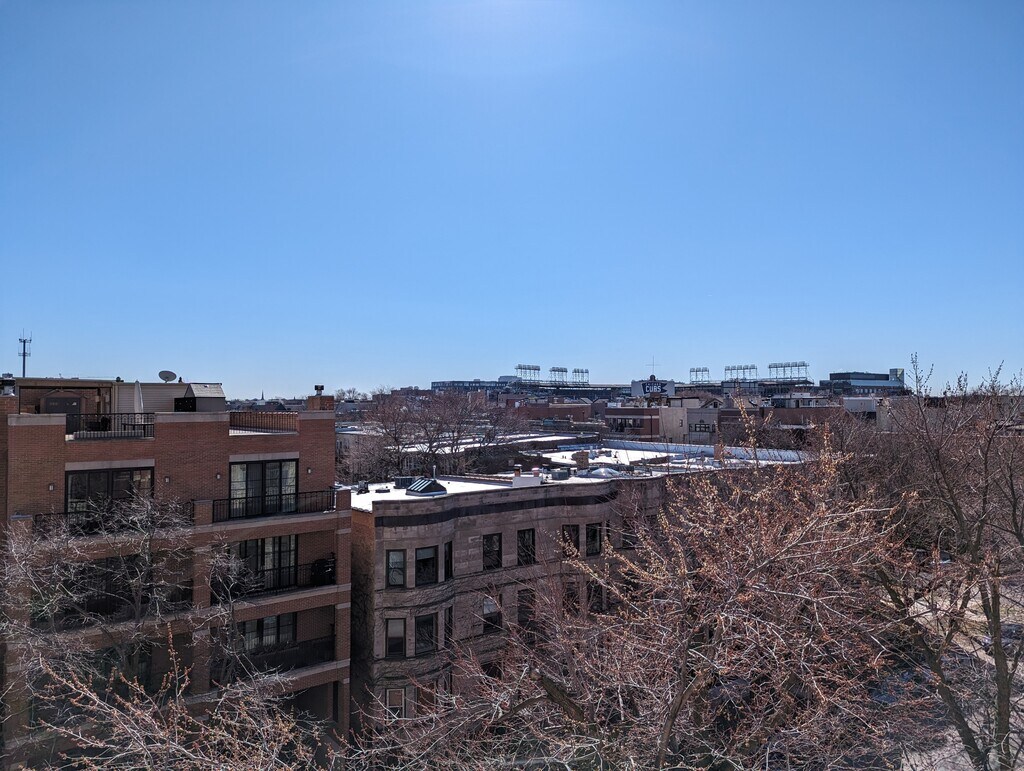 Sunny and Spacious 2 bedroom 2 bath in an amazing Lakeview/Wrigley location. Drenched in sunlight with an Unobstructed South view of the city skyline and Wrigley Field - HOLY COW! Updated kitchen with stainless appliances and good sized breakfast bar, and plenty of room for a table in the living/dining combo. Large primary bedroom features a walk in closet and attached bath with double vanity. Second bedroom is a good size and will easily accommodate a queen bed, or would be perfect for home office or guest room. HUGE south facing balcony is perfect for grilling and chilling. In Unit laundry and 1 garage spot included!! Central Heat/Air, gas, water, cable and internet also included. Small pets okay with non-refundable pet fee, 30lbs max for dogs. Short walk to everything Lakeview and Wrigley, close to Red line, restaurants and shopping.