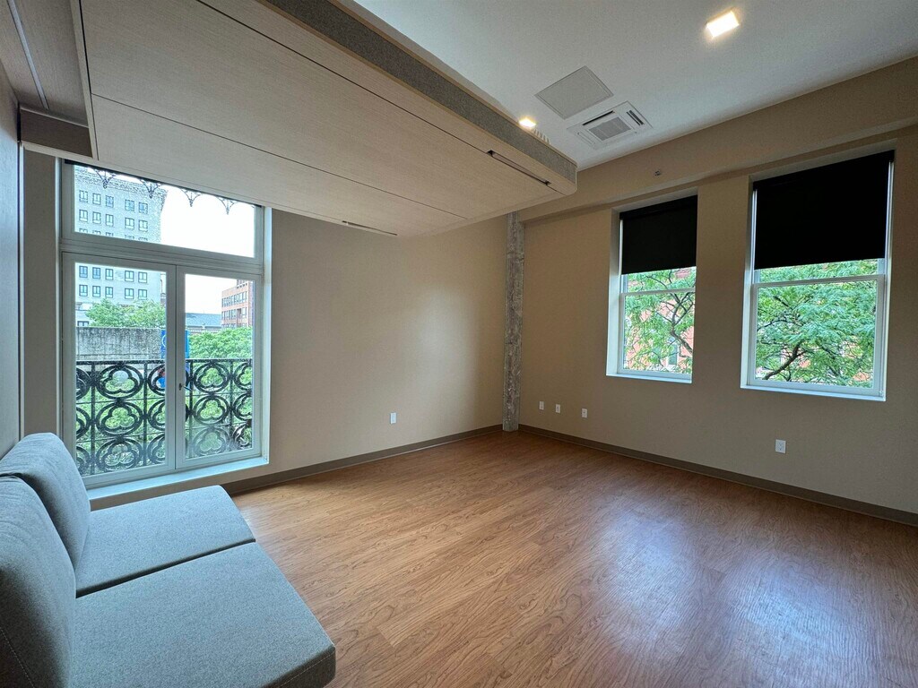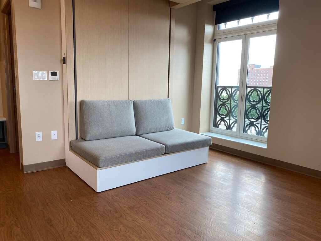Apartments at 83 Hanover Street 83 Hanover Street, Manchester NH ALL UTILITIES INCLUDED IN THE RENT! No Security Deposit Required Enjoy a partially furnished Robotic Bed in your studio. Press a button and the Queen sized bed comes down from the ceiling. During the day it raises to the ceiling to provide you with a large living room space. You get a partially furnished apartment that saves space and saves you money! FEATURES: Apartment Amenities • Keyless Entry • Central Air & Heat • Microwave • Dishwasher • Solid Surface Countertops • Wood Style Flooring Throughout • High Ceilings • Built-in Coat Rack and Bench • Bathroom has oversized stand-up shower and beautiful vanity • USB Outlets • In-home WiFi • Cat Friendly Community Amenities • 24-Hour Emergency Maintenance • Public transportation is just steps from the door • Video Surveillance in Common Areas Work Orders Conveniently placed Online • Trash Removal • Optional Fitness Center • Elevator • 25% Discount on the monthly rental of an office space across the street at Red Oak Coworking • Non-smoking • Laundry Room on each floor • Laundry Payment System • Parking Garage Option • Arts & Theatre District Location – Across from Palace Theatre Green Amenities • LED Lighting • Energy Star Appliances • Energy Efficient Windows All These Utilities are Included in the rent: • Electricity • Heat • A/C • Hot Water • Basic In-home WiFi • Water & Sewer Broker/Owner MLS# 5065712