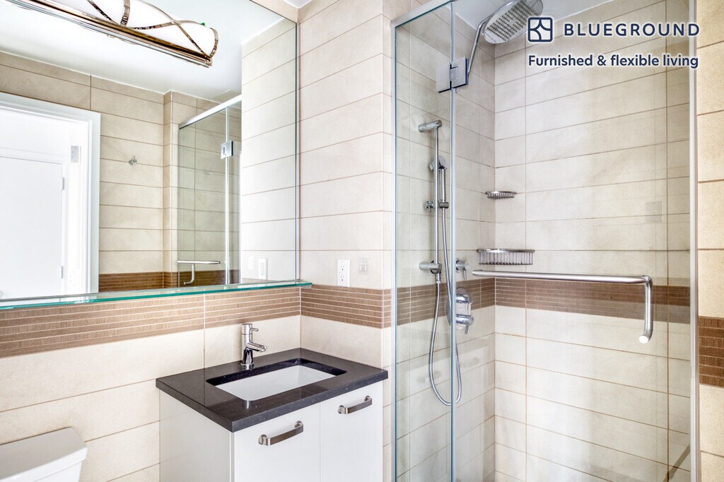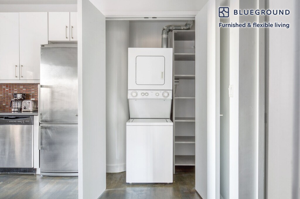 Feel at home wherever you choose to live with Blueground. You’ll love this sophisticated Theater District furnished one bedroom apartment with its modern decor, fully equipped kitchen, and stylish living room with great views. Ideally located, you’re close to all the best that New York has to offer! (ID #NYC643) The advertised rate of $5,020/month is the lowest available price, based on a 10 month(s) and 18 day(s) stay with a move-in date of February 20, 2026. Rates vary depending on the duration of stay, season, and other parameters. For exact pricing and additional pricing components, please visit our website and enter your desired move-in and move-out dates. The rate is applicable when billed upfront; it can be higher if billed in multiple payments. Brokers are welcome to reach out. Were you looking for an unfurnished lease? Try Blueground instead and upgrade from unfurnished to furnished living: - Furnished at rates comparable to unfurnished - No setup or furniture costs - save thousands - Move-in ready - save time, just bring your suitcase Designed with you in mind As with any Blueground apartment, you’ll find a thoughtfully designed space complete with beautiful furniture and a fully equipped kitchen in this one bedroom property. And, thanks to our superior quality mattresses, luxury linens, and towels, you can relax knowing you’ll always feel comfortably at home. When you’re ready for some fun, you can take in the New York vibes or bring the entertainment to you with the premium wireless speaker or smart TV. This apartment also offers in-apartment laundry. Sleeping arrangements Queen Bed, 63in/160cm Amenities Building amenities unique to this one bedroom apartment include an on-site: - Dryer - Elevator - Washing machine Arrival and ongoing support The entire apartment is yours to enjoy! Throughout your stay, you’ll have access to our Client Experience team through the Blueground App. You can schedule additional cleanings, submit maintenance requests, and view our neighborhood recommendations with just a few taps. We’ll share all details upon confirmation of your stay. Other things to note This Blueground apartment has flexible lease options, allowing you to book it for one month, a year, or more. Brokes CYOF. We take great pride in ensuring every photo displayed is shot in our own units with our actual furnishings. That said, we regularly refresh our decor and furniture arrangement, which may differ from what’s pictured. [SI]