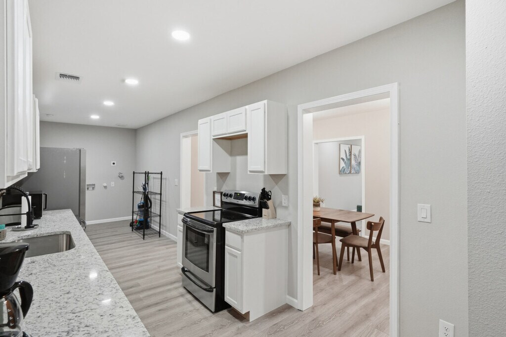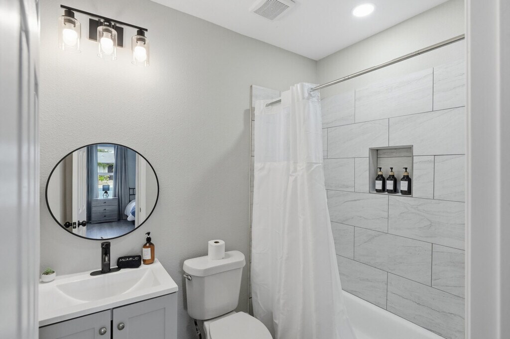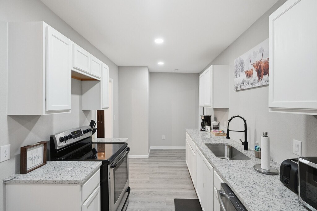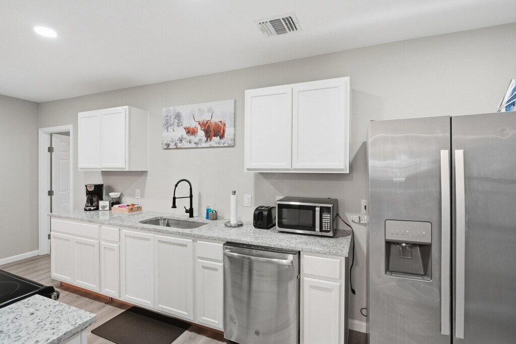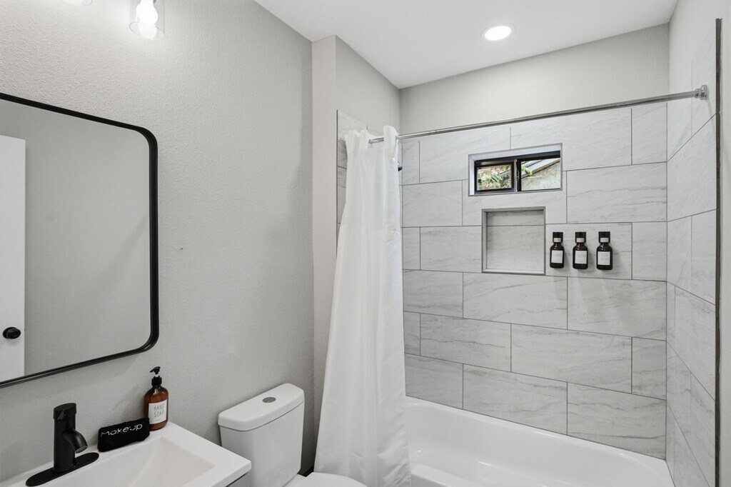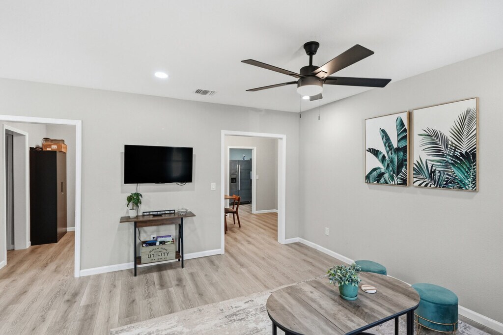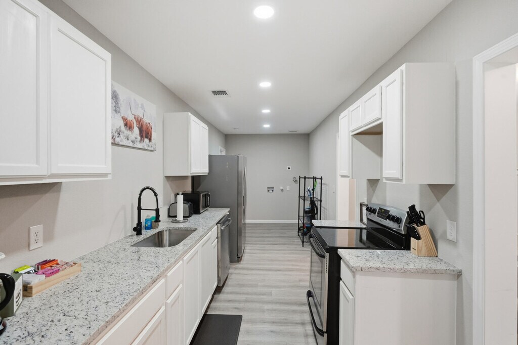 Relax and feel at home in this bright 3-bedroom, 2-bath home in San Antonio’s quiet Porter St. neighborhood. This space offers comfort and convenience and is ideal for couples, small families, or business travelers. This home features a modern, fully equipped kitchen with stainless appliances and all cooking essentials, as well as a bright, open-concept living area with a Smart TV and comfortable seating. Enjoy the convenience of an in-unit washer and dryer and central heating and cooling to keep you comfortable year-round. Guests have private access to the entire back unit, including three bedrooms, bathrooms, living room, kitchen, and laundry area. The entrance and amenities are separate from the front unit, ensuring privacy throughout your stay. Located in the historic Highland Park / Denver Heights area, the neighborhood offers a peaceful residential feel with easy access to downtown San Antonio. You’ll find local eateries, coffee shops, and groceries nearby, and iconic attractions like the River Walk and the Alamo within minutes. Downtown San Antonio and the River Walk are about a 10-minute drive. Bus stops are within a 5-minute walk, and rideshare services like Uber and Lyft are readily available. Includes a compact dining nook perfect for meals or remote work. [SI]