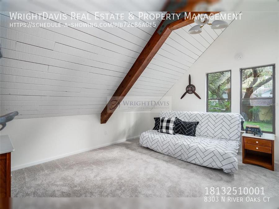 Experience elevated living in this stunning 4-bedroom,3-bathroom residence where distinctive architecture meets breathtaking river views. From the moment you enter,the home makes a dramatic impression with soaring 30-foot cathedral ceilings,striking exposed red cedar trusses,and a grand fireplace that anchors the spectacular great room. Designed for both comfort and sophistication,the main level features a luxurious primary suite complete with a private side porch,expansive walk-in closets,and a beautifully appointed en-suite bath with a spacious walk-in shower. A second bedroom and full bath on the main floor provide flexible space for guests,a home office,or multigenerational living. A generously sized laundry room with washer and dryer adds everyday convenience. The chef-inspired kitchen blends style and functionality,showcasing stainless steel appliances,solid wood cabinetry,quartz countertops,and a large center island with glass cooktopperfect for entertaining or casual diningall while enjoying picturesque river views. Upstairs,a stunning loft overlooks the main living area and captures sweeping views of the river below. This versatile space can easily serve as a fifth bedroom,executive home office,fitness studio,or additional lounge. Two additional bedrooms and a full bathroom on the opposite side of the second level provide comfort and privacy for family or guests. Step outside to your private outdoor retreat,where a spacious wooden deck and outdoor shower create the perfect setting for relaxing,entertaining,and enjoying the natural beauty of the riverfront surroundings. This exceptional home offers a rare blend of architectural character,refined finishes,and serene waterfront living.! In addition to the advertised base rent,all residents are enrolled in the Resident Benefits Package (RBP) for $50.00/month which includes HVAC air filter delivery,credit building to help boost your credit score with timely rent payments,utility concierge service making utility connection a breeze during your move-in,and much more! More details upon application. Pets are welcome at the owner's discretion - 2 pets max - 50 lbs max. Vacant and available now! MLS# TB8486414