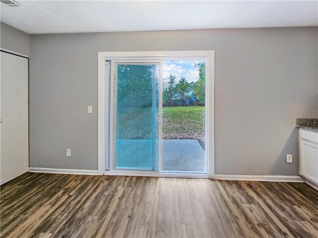 This beautifully updated duplex is tucked away in the quiet Glenwoods community of Riverdale, offering quick and easy access to Hwy 138, I-85, and I-75. Commuting to downtown Atlanta, Hartsfield-Jackson Airport, Jonesboro, and South Atlanta is simple and convenient from this ideal location. Great schools! Set on a spacious, level lot, the home features a large parking pad and a fenced backyard, perfect for everyday living. The exterior showcases winter-white brick accented by rich brown wood trim, creating inviting curb appeal. Inside, the home has been thoughtfully updated with luxury laminate flooring throughout, soft gray walls with crisp white trim, window blinds, modern lighting, and a clean, contemporary aesthetic. The bright, open living room is filled with natural light from a large picture window, creating a welcoming space to relax or entertain. The eat-in kitchen offers stainless steel appliances, granite countertops, abundant white cabinetry, a pantry, and room for a dining table. Sliding glass doors lead to a private porch—ideal for grilling or enjoying time outdoors. A conveniently located laundry closet with a full-size washer and dryer sits just off the kitchen. Down the hallway, you’ll find two generously sized bedrooms and a full hall bathroom with a shower/tub combination and a new vanity. The oversized primary bedroom includes a walk-in closet and a private half bath with updated vanity and lighting, providing added comfort and privacy. VASH and Housing Choice Vouchers are accepted. Tenant is responsible for all utilities and trash service. We are seeking qualified, long-term residents. Applications and rental requirements are available on our website. All Electric Pets Under 25 Lbs Allowed $65/Mo Per Pet Tenant Pays All Utiltiies White Cabinets Window Blinds