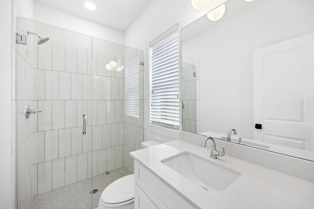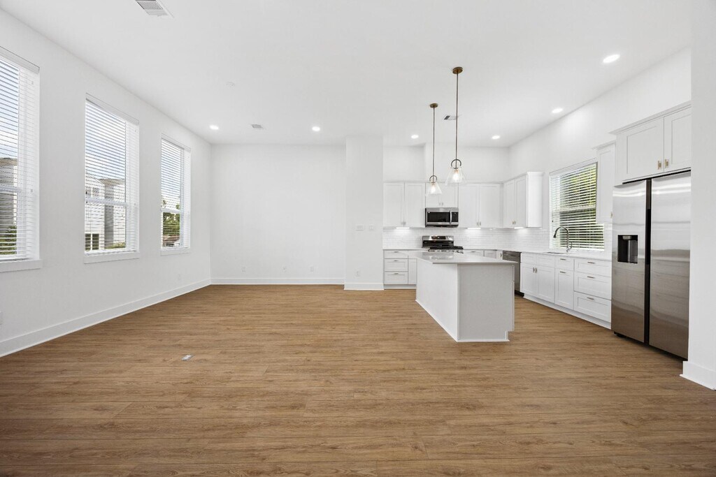 This stunning 3-bedroom, 3.5-bathroom home combines modern design with timeless comfort and abundant natural light throughout. NO CARPET in common areas or stairs for easy maintenance. The gourmet kitchen features stainless steel appliances, elegant cabinetry, and sleek finishes — perfect for cooking and entertaining. The open-concept layout offers effortless flow and functionality. Upstairs, enjoy a private primary suite with a spa-inspired en-suite bathroom, featuring double vanities, TWO shower heads, and a spacious walk-in closet. Move-in ready and available for rent! Schedule your private tour today.
