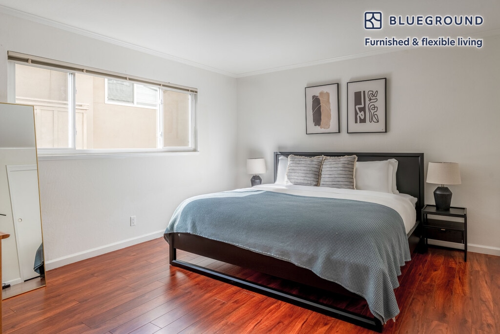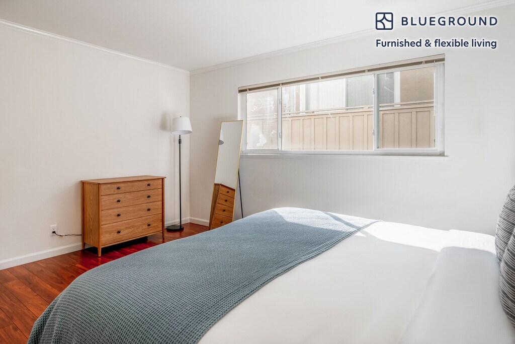 Show up and start living from day one in Palo Alto with this charming one bedroom Blueground apartment. You’ll love coming home to this thoughtfully furnished, beautifully designed, and fully equipped University South home. (ID #SFO1289) The advertised rate of $3,890/month is the lowest available price, based on a 12 month(s) stay with a move-in date of March 26, 2026. Rates vary depending on the duration of stay, season, and other parameters. For exact pricing and additional pricing components, please visit our website and enter your desired move-in and move-out dates. The rate is applicable when billed upfront; it can be higher if billed in multiple payments. Brokers are welcome to reach out. Were you looking for an unfurnished lease? Try Blueground instead and upgrade from unfurnished to furnished living: - Furnished at rates comparable to unfurnished - No setup or furniture costs - save thousands - Move-in ready - save time, just bring your suitcase Designed with you in mind Gorgeous furniture, fully equipped kitchen, smart TV, and a premium wireless speaker are just a few of the amenities you’ll find inside this one bedroom apartment. Ideally located in Palo Alto, you’ll find a lot to love outside as well. When you’re ready to relax, you’ll be happy to discover every Blueground bedroom comes with superior quality mattresses, luxury linens, and cozy towels. We handle everything so you can simply show up and start living. Sleeping arrangements King Bed, 70.8in/180cm Amenities Building amenities unique to this one bedroom apartment include an on-site: - Dryer in building - Washing machine in building - Parking Arrival and ongoing support The entire apartment is yours to enjoy! Throughout your stay, you’ll have access to our Client Experience team through the Blueground App. You can schedule additional cleanings, submit maintenance requests, and view our neighborhood recommendations with just a few taps. We’ll share all details upon confirmation of your stay. Other things to note Building amenities may have an extra cost. This Blueground apartment has flexible lease options, allowing you to book it for one month, a year, or more. Parking is offered based on availability and is subject to a fee. Please keep in mind that this is a walk up building. We take great pride in ensuring every photo displayed is shot in our own units with our actual furnishings. That said, we regularly refresh our decor and furniture arrangement, which may differ from what’s pictured. [SI]