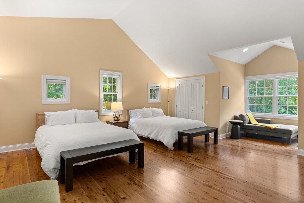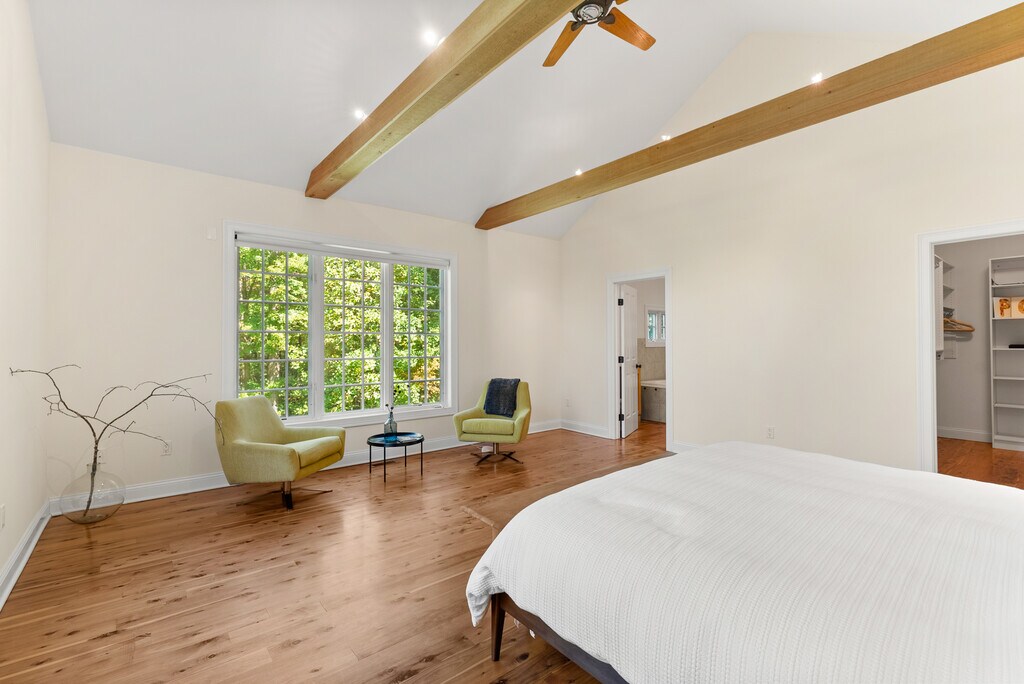 Call for Availability - This stunning barn-style contemporary home is tucked away on a quiet country road, less than a mile from Lake Waramaug. Offered fully furnished and with utilities included, the home is available from March 1st, 2026, through May 31, 2026. Thoughtfully designed as the ultimate country escape, this spectacular home features three en-suite bedrooms plus a fourth bedroom on the garden level, along with multiple inviting spaces perfect for relaxing, entertaining, or working remotely. The main level is anchored by a sun-drenched living room with soaring 20+ foot ceilings. A dramatic wall of windows reaches the vaulted peak, while an adjacent pair of towering windows is outfitted with remote-controlled shades - easily transforming the ambiance at the touch of a button. The open-concept layout flows seamlessly into the kitchen and dining area creating a great room of about 900 Sq.Ft. The kitchen is fully equipped for effortless cooking and entertaining, with a six-burner gas stove, two sinks, a breakfast bar, and ample storage. A sliding glass door in the dining room opens onto the expansive deck, complete with a gas grill and outdoor furniture for al fresco living. The main-level king bedroom suite offers another set of tall windows with remote-controlled shades, inviting natural light and peaceful views into the space. It also features a spacious walk-in closet and a luxurious en-suite bath with both a soaking tub and a stall shower. MLS# 24135687
