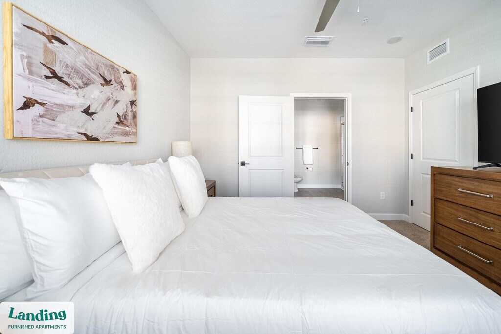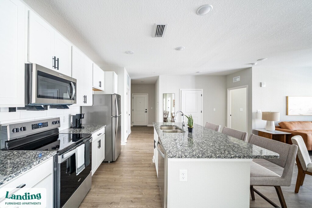Landing offers flexible lease terms from weeks to months. Please always visit our website or contact us for the latest pricing & availability. Stay longer, save more: 6-Month Minimum base rent: starts at $2529/mo 12-Month Minimum base rent: starts at $2079/mo Landing offers flexible leases across a network of over 35,000 fully-furnished apartments throughout 375+ cities so you can rent on your terms, practically anywhere, and avoid the hassle of paying deposits or application fees. Visit to learn about all the benefits of a Landing membership, see our competitive up-to-date pricing, explore available apartments, take virtual tours, and make reservations online without jumping through traditional rental hoops. Landing's apartments at Palm Breeze Apartments are designed for comfortable, easy living, with the ability to stay as long as you like. Experience living with Landing Every apartment is outfitted with all the modern essentials including: custom-designed furnishings, a fully-equipped kitchen with deluxe stainless steel appliances, a gourmet coffee maker, premium linens, Smart TVs, and incredibly fast, reliable internet for working from home. When you live with Landing, you'll enjoy a hassle-free experience with the added benefit of 24/7 access to our dedicated member experience team. Some of the nitty-gritty: a background check and proof of income are required; we're completely smoke-free; bundled utility packages and pricing vary based on length of stay; pet-friendly options available; listed price reflects a 12-month minimum stay.